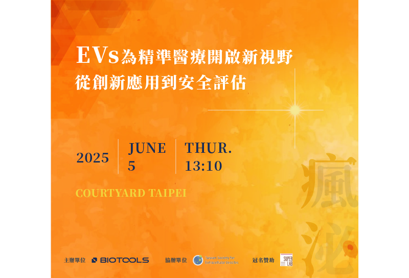 邀請來自 ➤ 台灣胞外體學會理事長 - 國立台灣大學教授 沈湯龍博士、陽明交通大學 - 黃奇英 副院長、亞東醫院 - 廖秀蓉 博士、台美檢驗 - 江建儀 博士等學研機構與醫療單位的專家,分享胞外體在生醫轉譯、治療策略與品質監控等領域的最新進展。