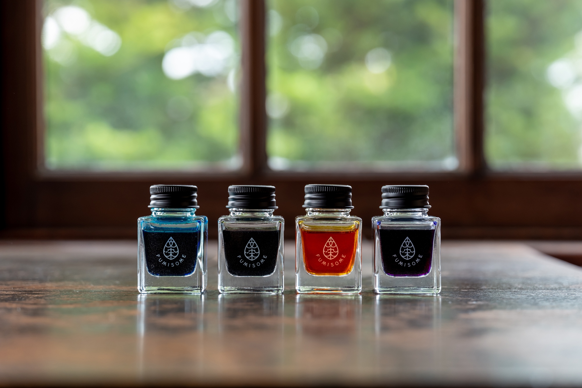 京都文具工藝品牌「文染」(FUMISOME),品牌概念顧名思義是將文字染在紙上,以墨水及書寫道具為中心,傳承日本職人傳統工藝並開發現代化的文具用品;多與「京都草木染研究所(田中直染料店)」共同開發系列墨水,使用日本傳統染料植物調色,如:藍草、梔子、地衣等。