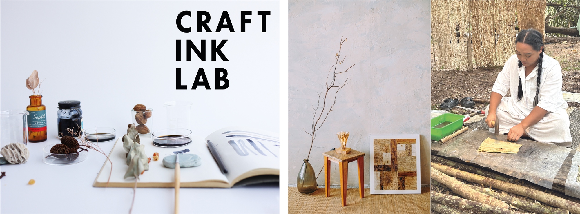 除了主題分享,兩個工藝品牌也將以工作坊的形式讓大家更認識他們的工藝形式。以台灣原生構樹為材料,文染 FUMISOME 將透過 CRAFT INK LAB 帶領大家製作成古典草木墨水。黑色特工隊 & 黑色雋永,將帶領大家認識構樹纖維及捶打樹皮工藝。