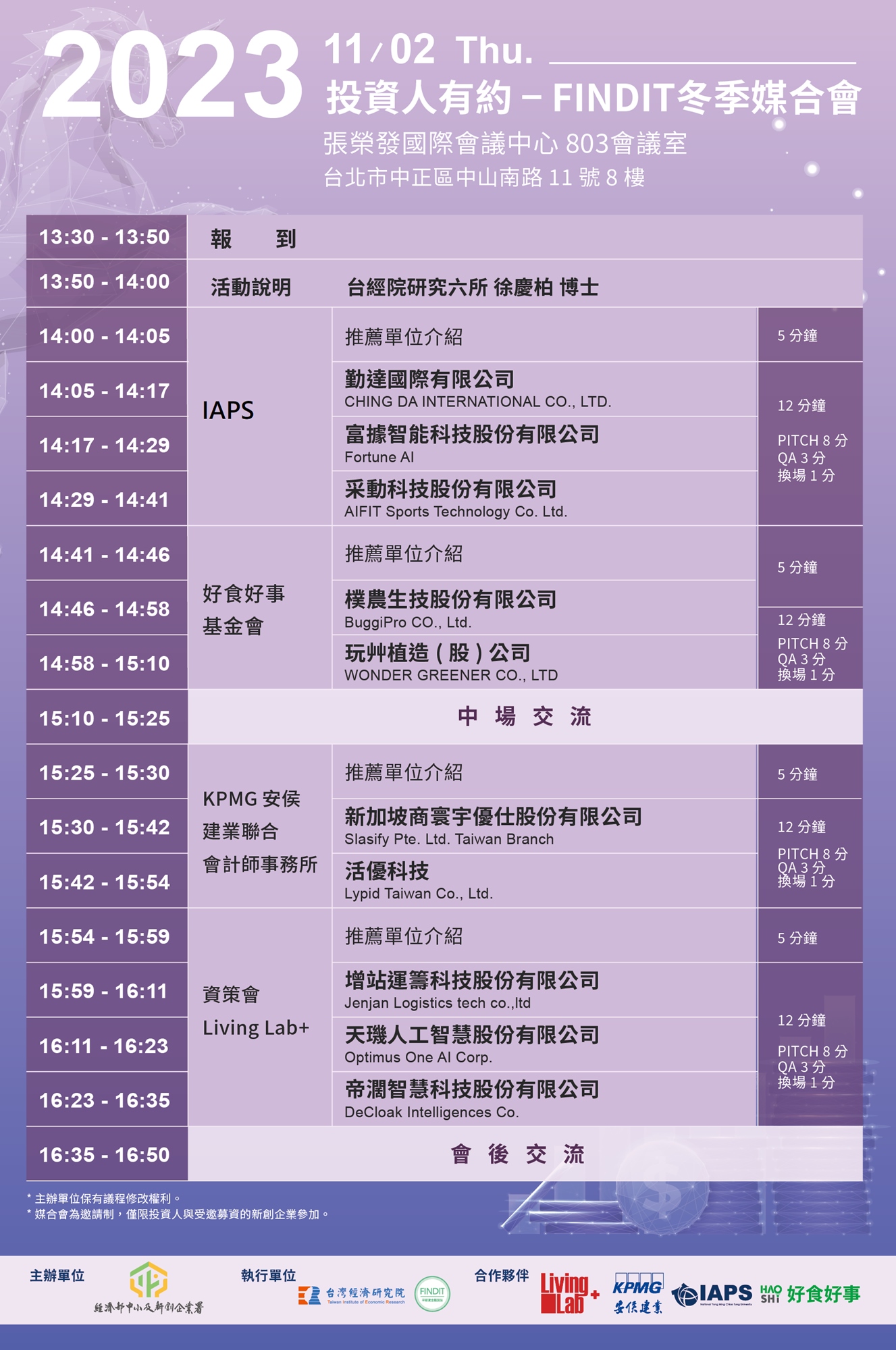 **本媒合會係以資金媒合為主,為邀請制,僅限入選新創以及受邀投資機構參與。**