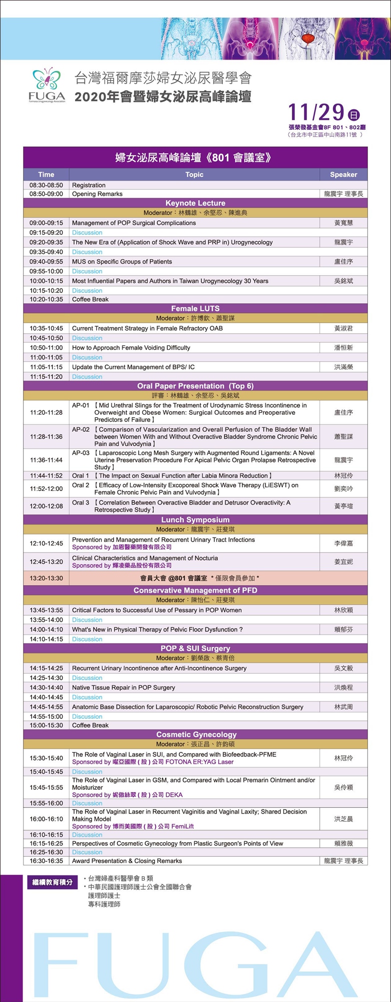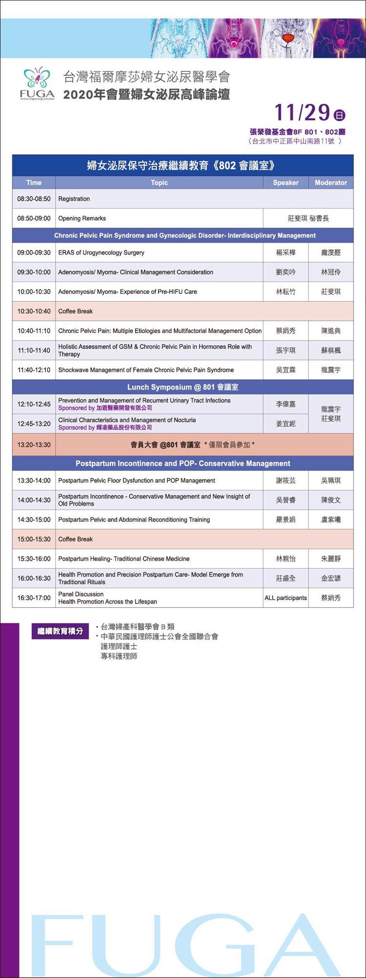 『台灣福爾摩莎婦女泌尿醫學會』會員免費,須繳清常年會費