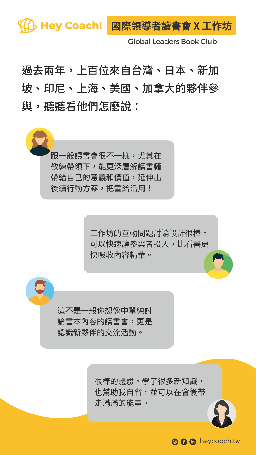 聽聽看參與過《國際領導者讀書會x工作坊》的夥伴怎麼說: