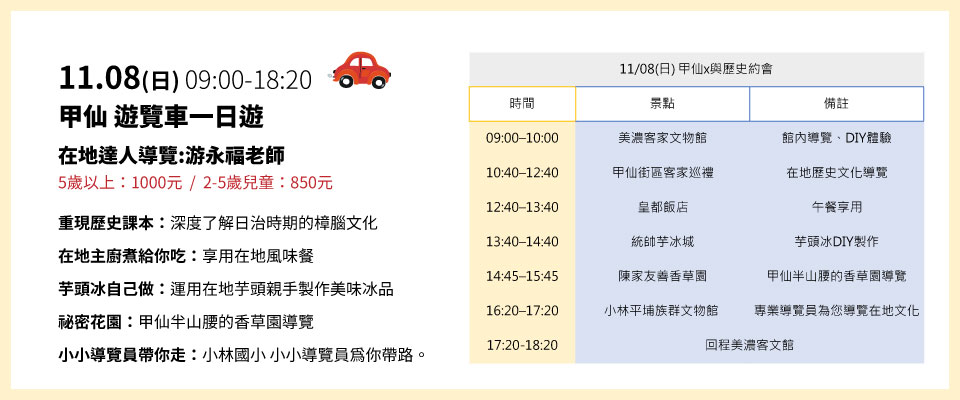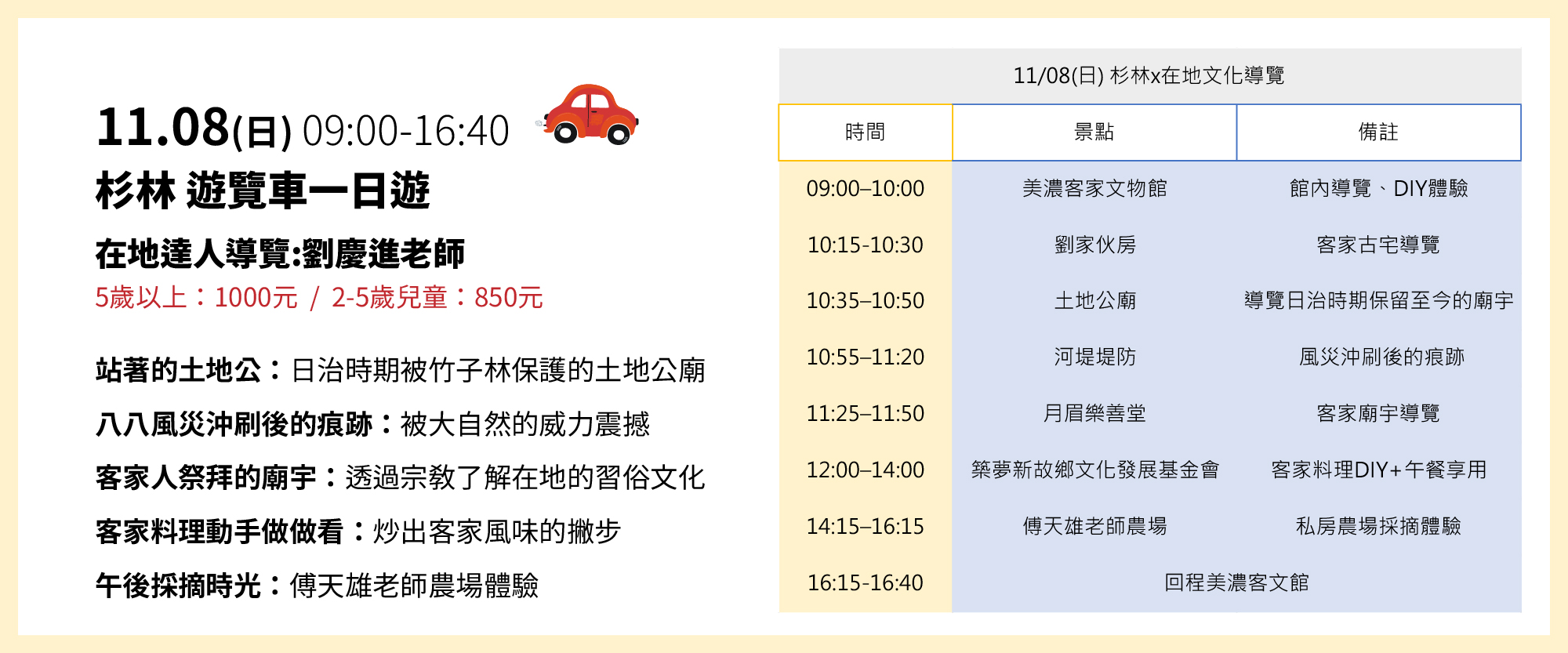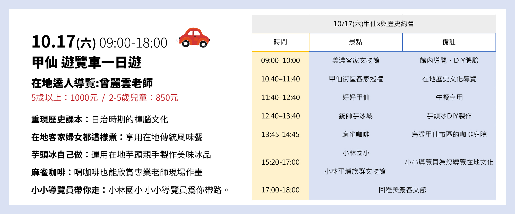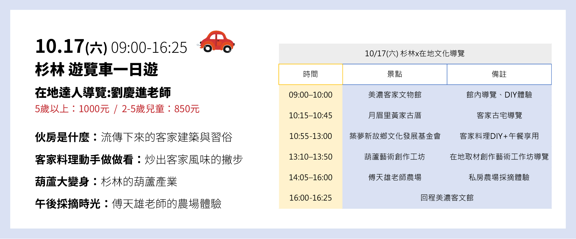 所有遊程都包含美濃客文館門票劵(包含導覽)+紙傘DIY體驗劵,