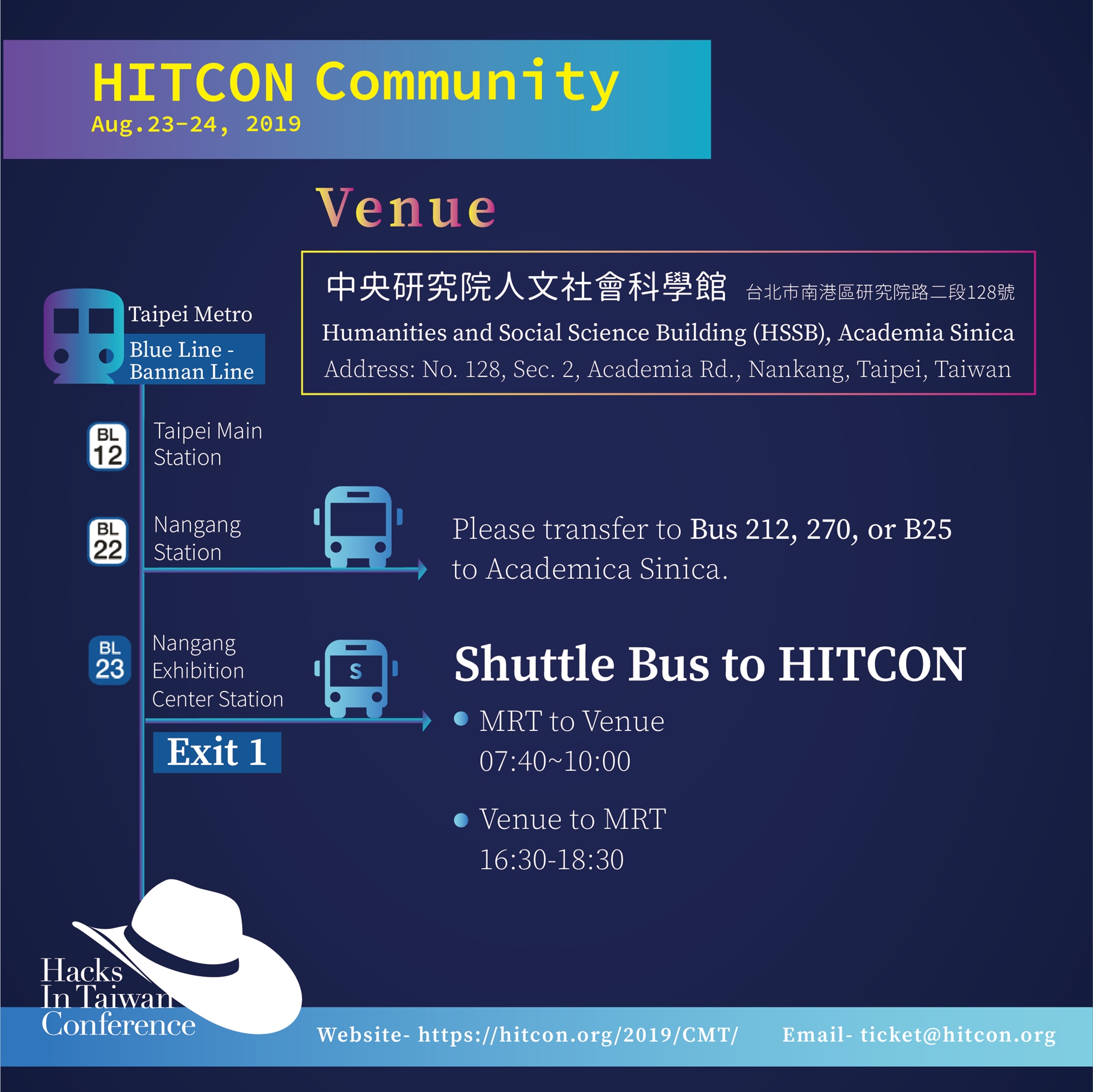 For any question, please contact our Conference Service Email ticket@hitcon.org