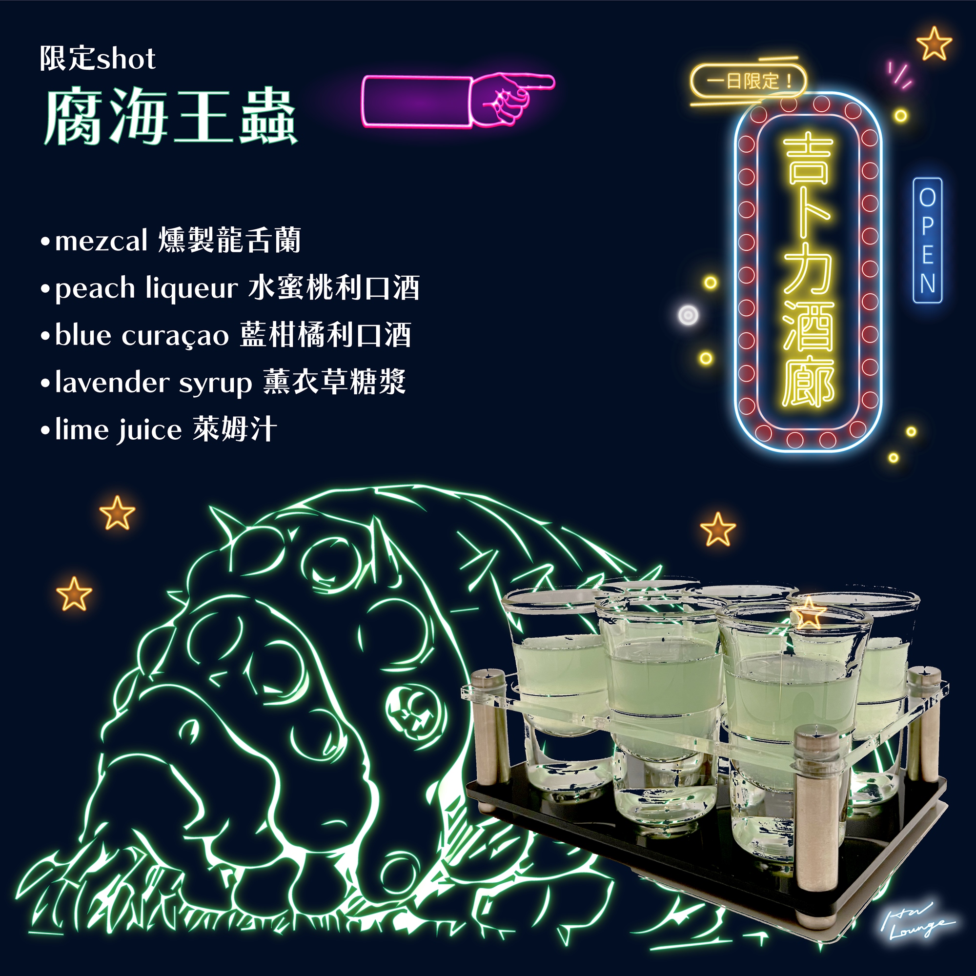 - 活動現場調酒品項為主題特調四款,十一點後可以點店內原有酒單。
