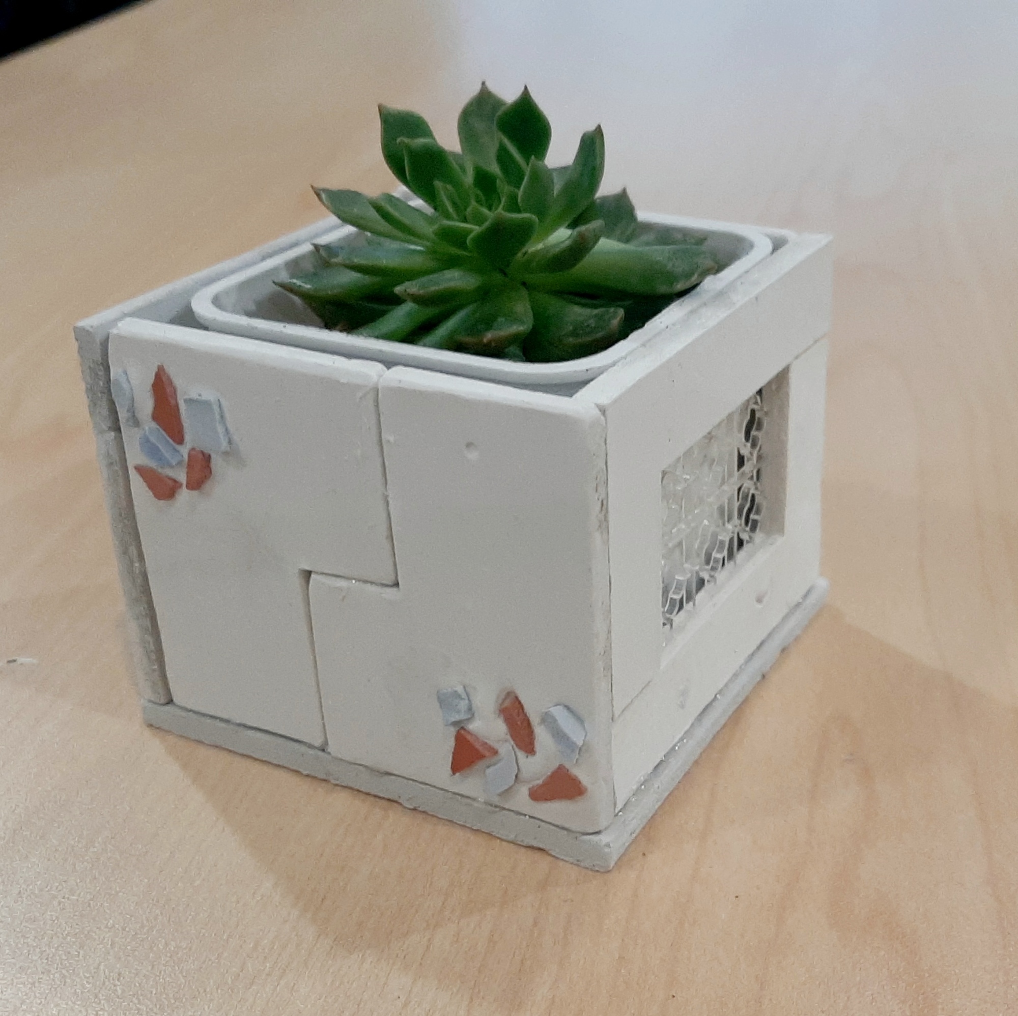 這場工作坊可以讓大家親手製作美麗的盆栽,除了DIY療癒身心以外,期望能達成廢棄材料再回收的使命,減少新材料的使用。就算做壞了也能打碎,攪和成新的材料,再重新製作,不用擔心浪費的問題,共創再循環效益。