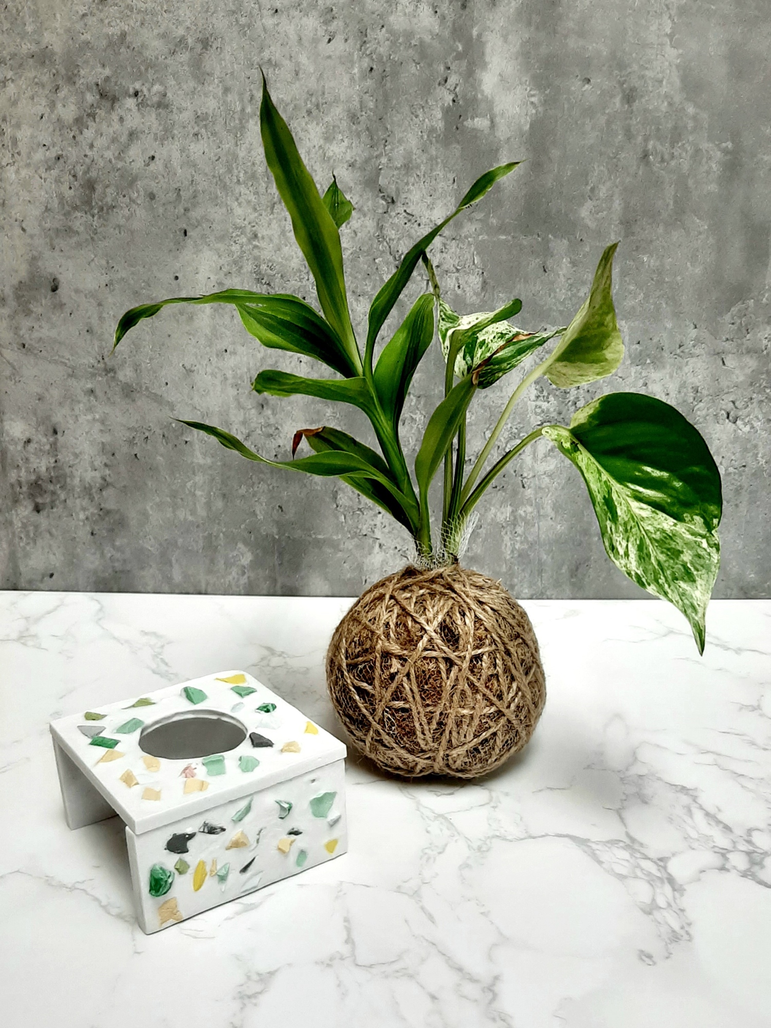 在講師的帶領下,示範如何客製化苔球底座,並逐步指導大家輕鬆製作麻繩水苔球,包括麻繩如何綑綁及水苔球的安置與維護,另外,現場提供數種觀葉植物讓大家選擇種植帶回,指導大家如何植栽綠化環境與療癒身心。