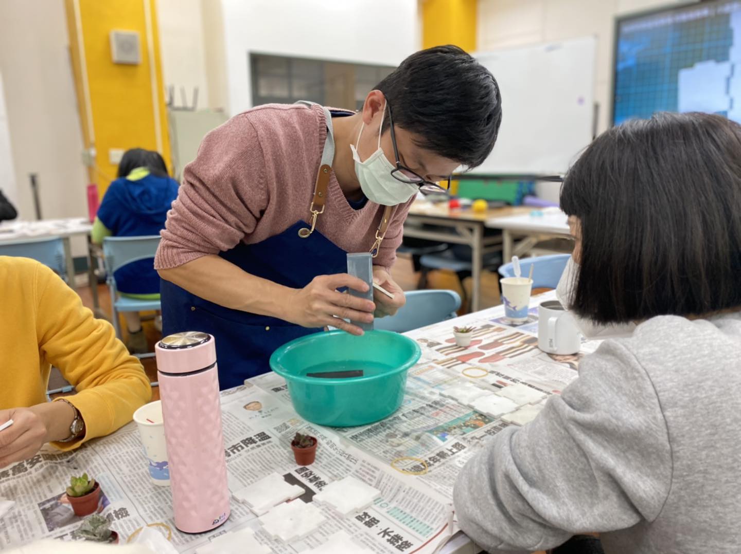這場工作坊可以讓大家親手製作美麗的盆栽,除了DIY療癒身心以外,期望能達成廢棄材料再回收的使命,減少新材料的使用。就算做壞了也能打碎,攪和成新的材料,再重新製作,不用擔心浪費的問題,共創再循環效益。