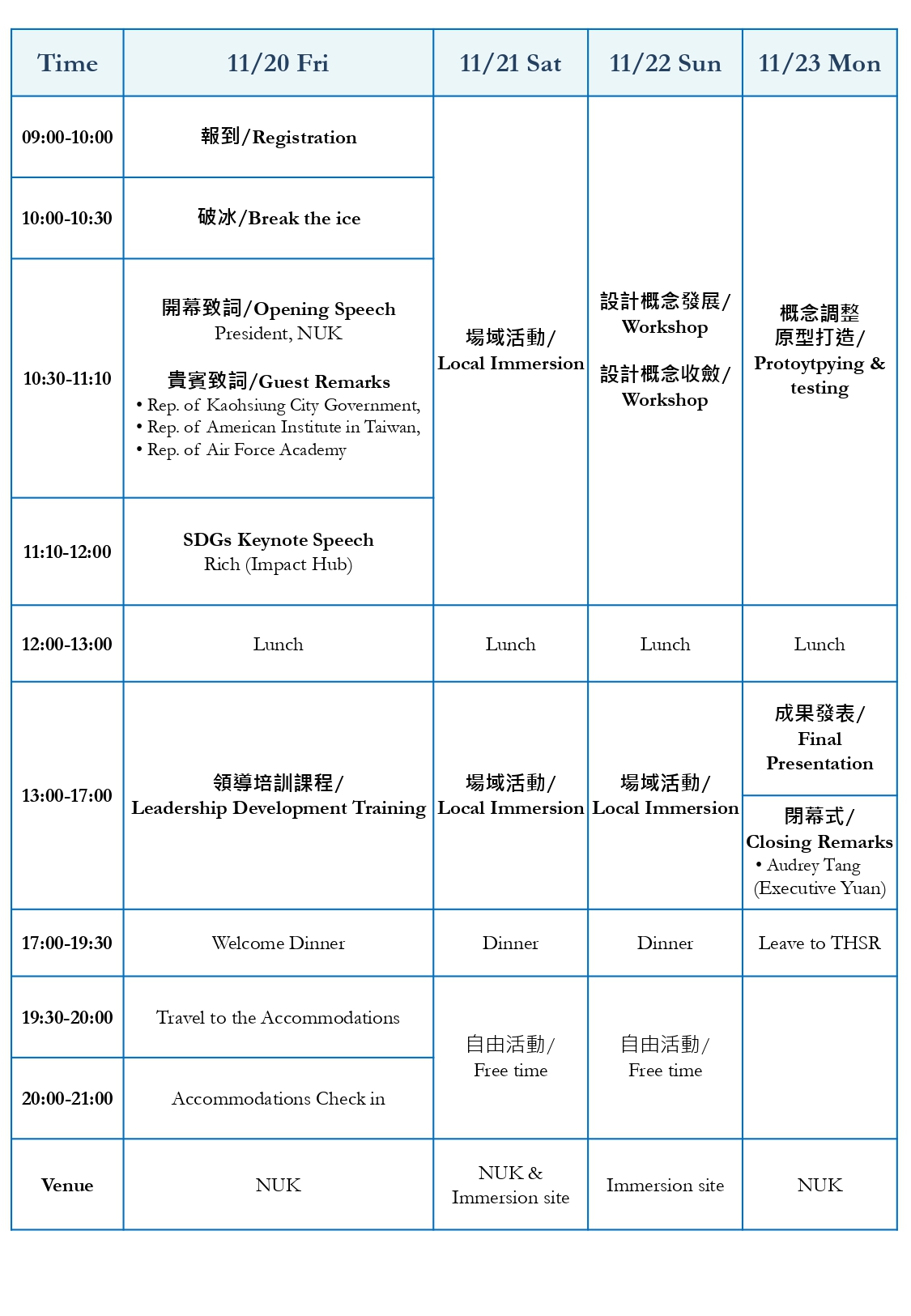 - 每日交通接駁 / Daily transportation between the accommodation, local community and NUK,