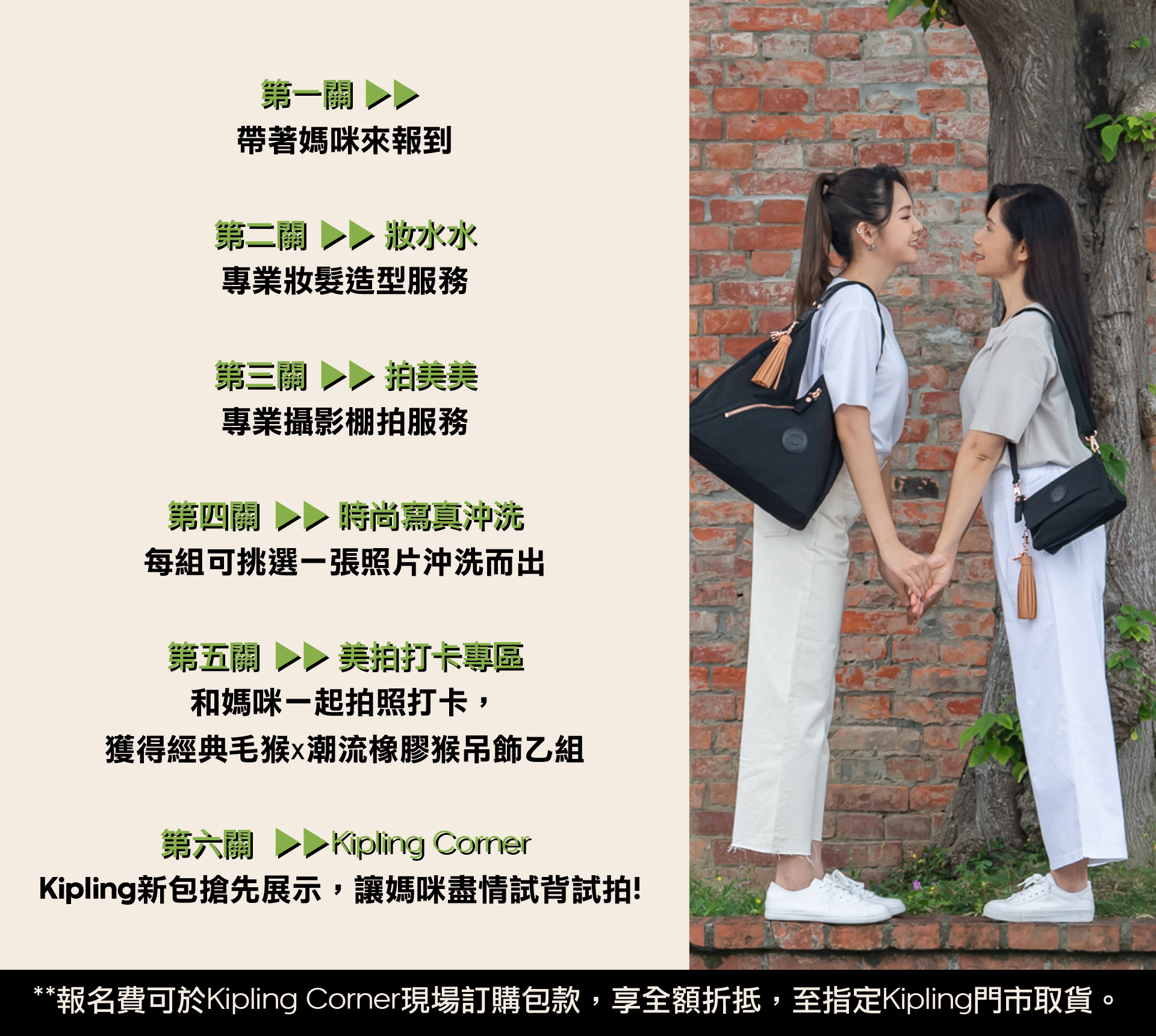 - 現場攝影師所拍攝之照片,經同意後將授權Kipling Taiwan分享於官網及官方社群。