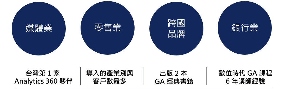 美庫爾,擁有豐富經驗,導入過最多產業並擁有 GA360 客戶數最多的實戰經驗,美庫爾 GA360 服務足跡遍佈銀行、零售、媒體與跨國品牌等各行各業。現在,美庫爾將這些寶貴的經驗集結成課程,讓每一位渴望提升自我、積極追求專業的您將有機會報名參與業界大師的系統教學。