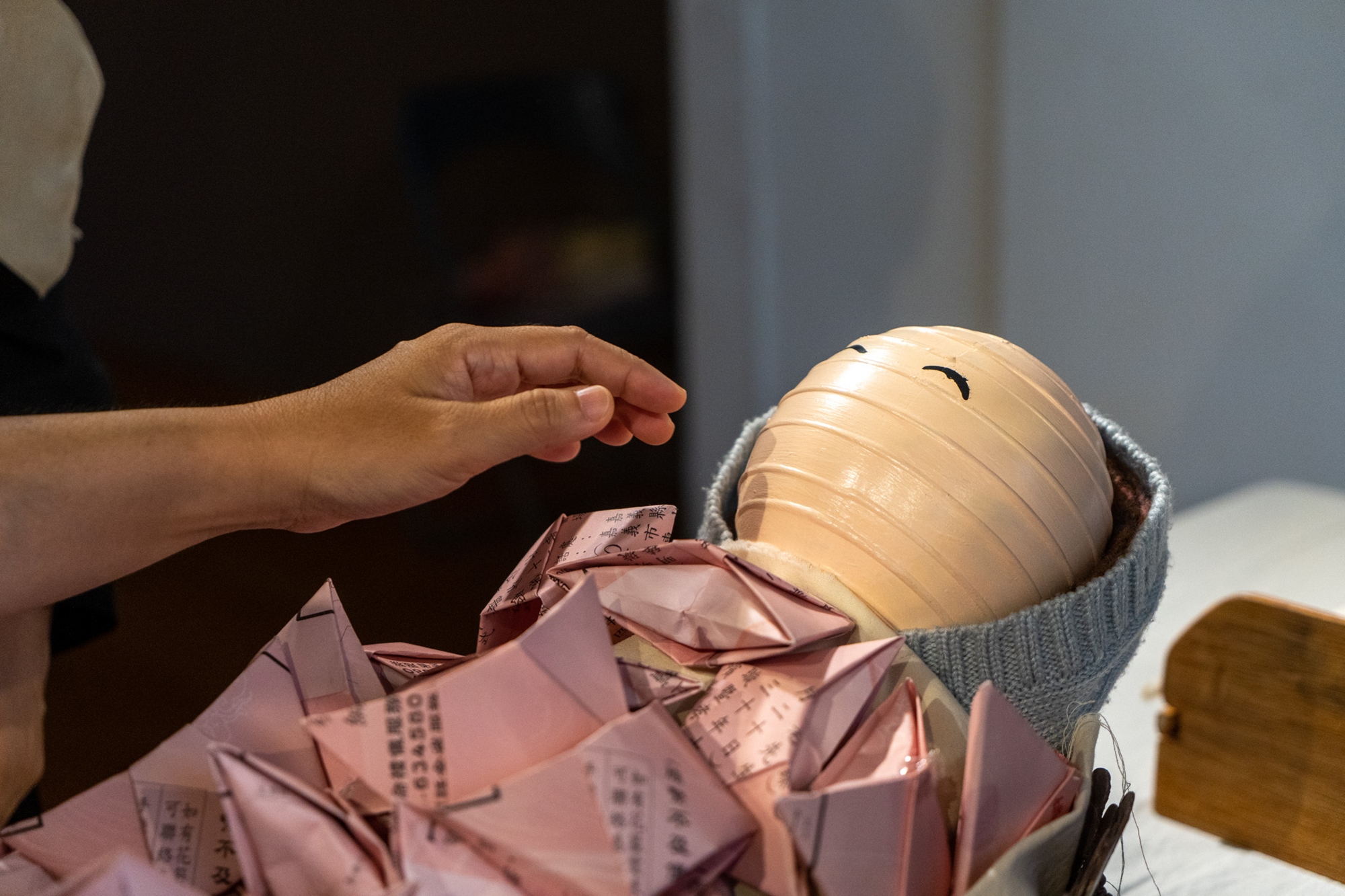 陳姿華的〈藏屋〉從自身家庭出發,深入那間時而反鎖時而需要被整理的房間,嘗試聆聽失智者的心理狀態與需求。珍貴的寶藏被藏起,關於生命的記憶被留下。在強行撬開反鎖的門之外,藝術家選擇親自在生活用品的堆疊中追尋一段記憶與時空風景,並帶出一個總被忽略的提問:「此刻他們需要什麼?」