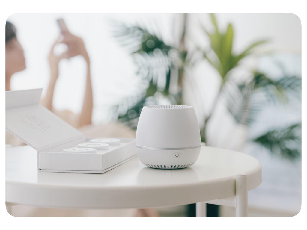 結合了 # UVA光觸媒制菌 以及 #獨家純天然精油膠囊 的香氛機,UVA 光觸媒空氣淨化功能,能夠抑制空氣中的細菌病毒,讓空氣乾淨純淨。便利不沾手的精油膠囊,無添加化學揮發藥劑及香料,即可散發天然精油的好聞氣味,也方便快速替換香味,而且安全又不增加室內濕氣。