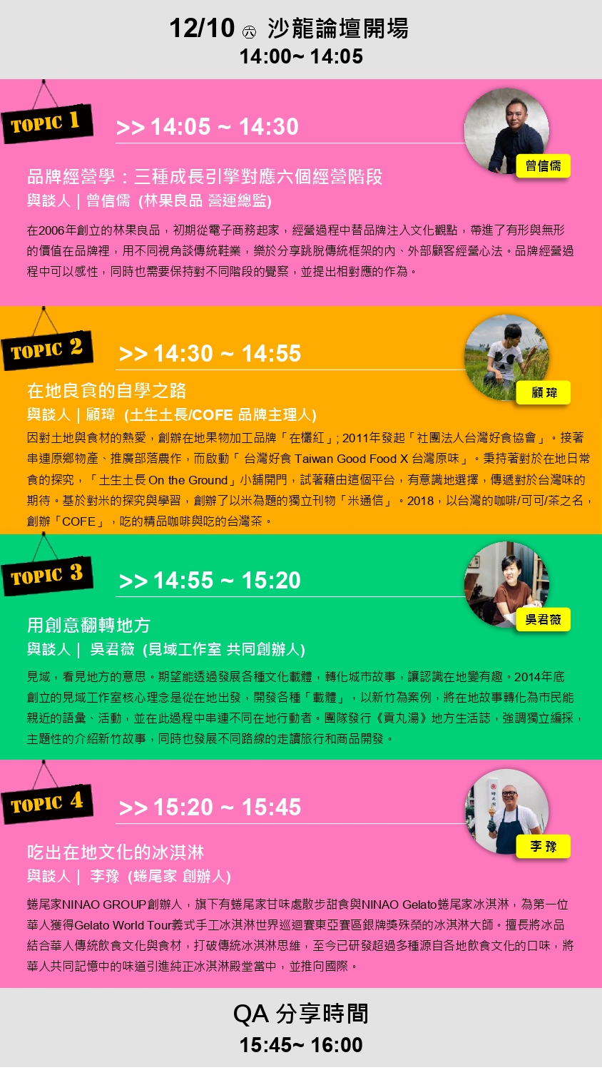 與談人|曾信儒(林果良品營運總監)、顧緯(土生土長/COFE品牌主理人)、吳君薇(見域工作室共同創辦人)、李豫(蜷尾家創辦人)