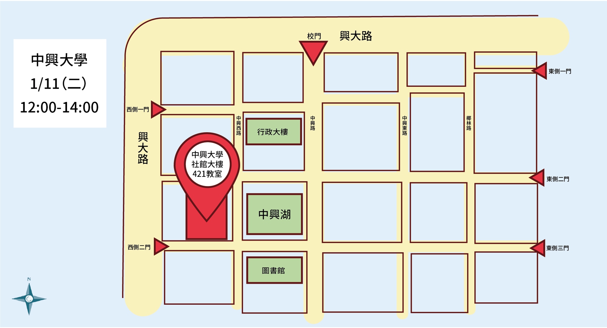 1/11(二) 12:00-14:00 | 中興大學社管大樓4樓421教室 (台中市南區興大路145號) |