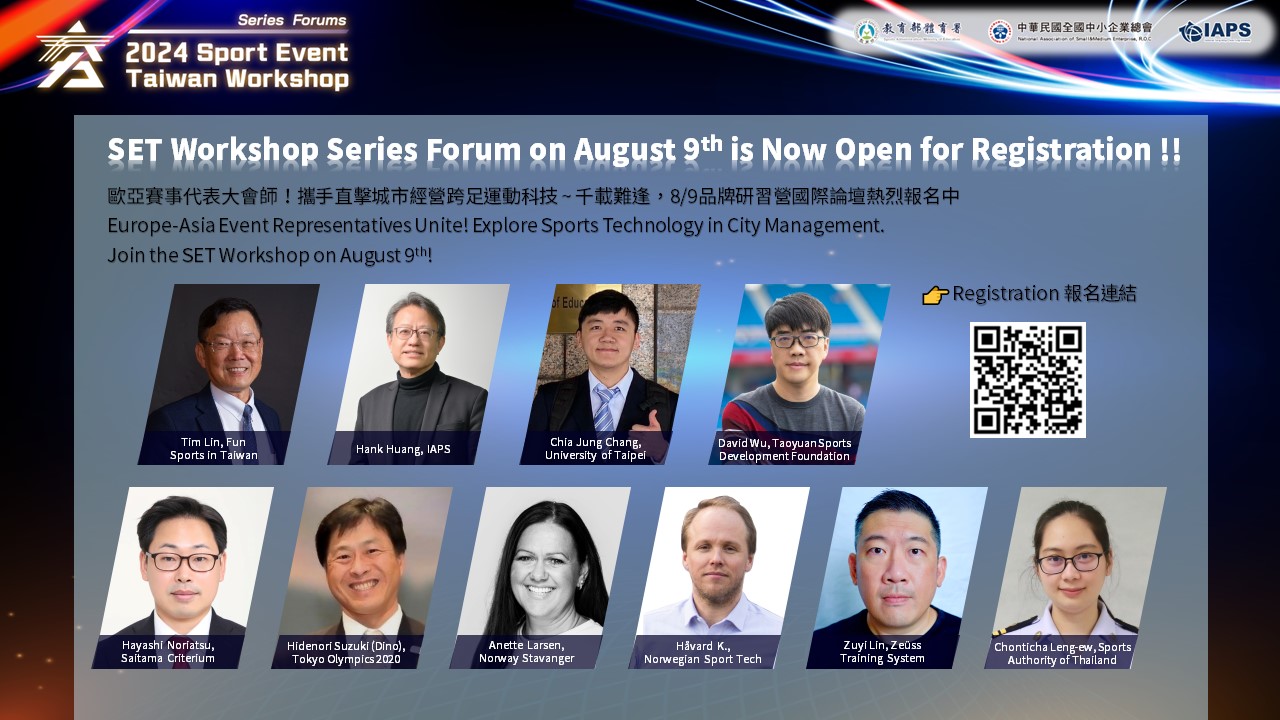 The "SETW Series Forum" on August 9th, along with the "ASPN Demo Day", will be jointly held at CORNER MAX. Focused on "International Sports Events x City Branding," the event will delve into global city sports event management and branding strategies. Discussions will also cover advancements in sports technology within city settings, featuring Dr. Hank Huang, Vice President of Office of Industry-Academia Co-creation at NYCU, David Wu, CEO of Taoyuan Sports Development Foundation, as well as representatives from cities such as Yunlin and Kaohsiung. Stay tuned for exciting updates!