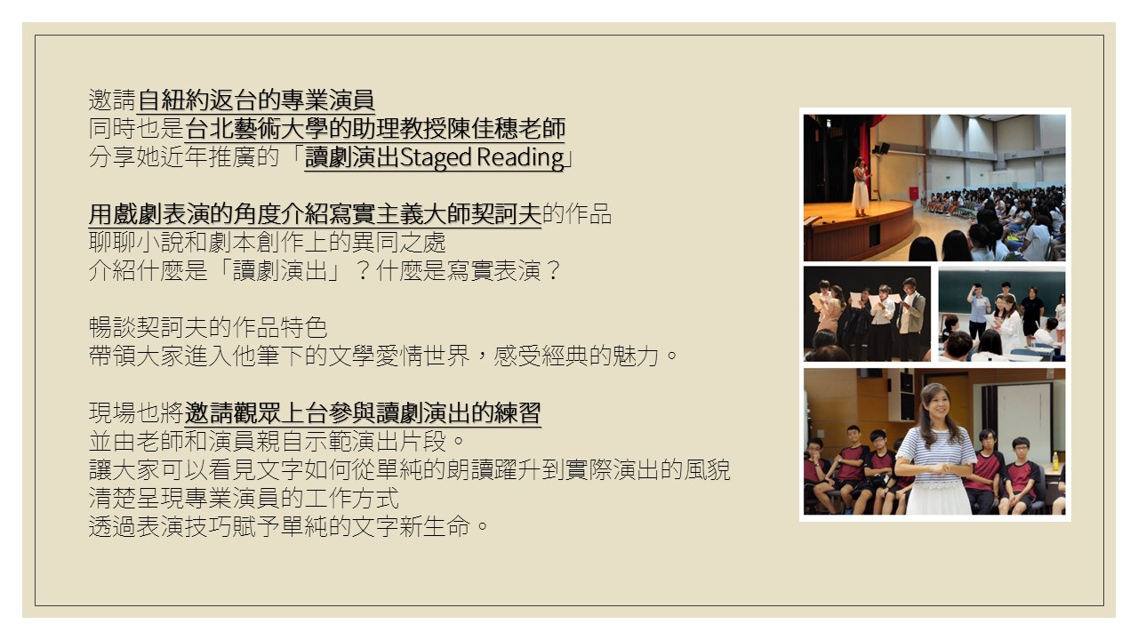 ◆了解讀劇演出Staged Reaing