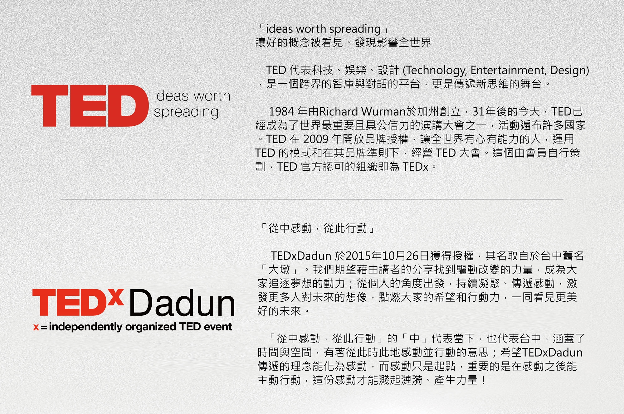 - 活動相關問題:請洽TEDxDadun@gmail.com或TEDxDadun粉絲專頁。