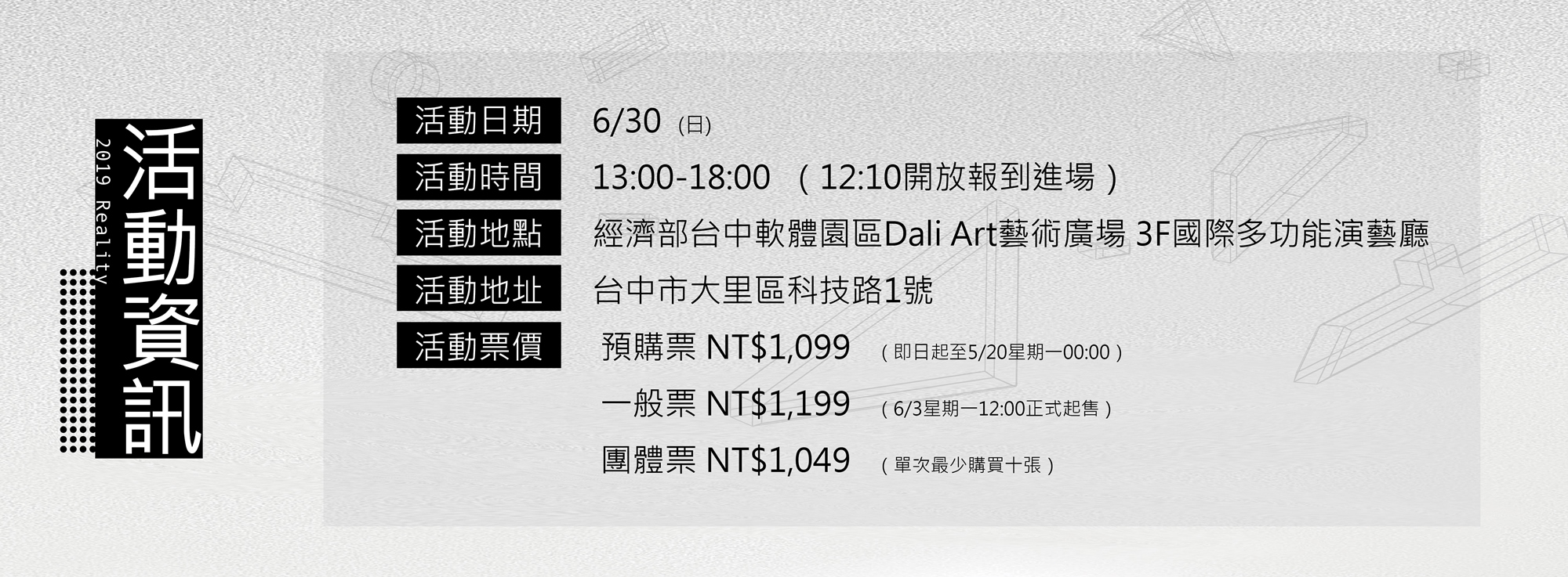 - 本活動不進行網路直播,請欲參加的朋友務必購票入場。