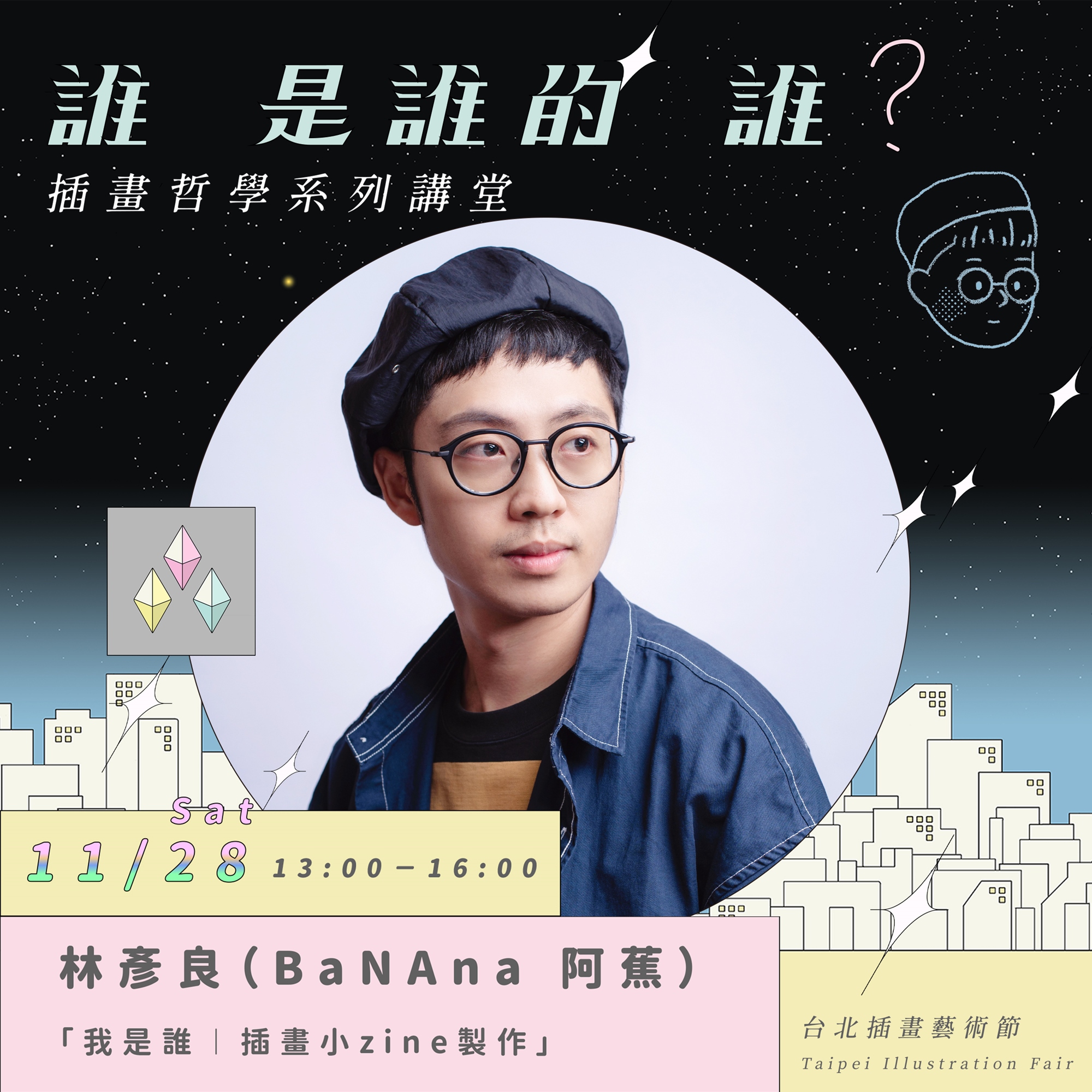 13:00-16:00「我是誰︱插畫小zine製作」邀請講師:林彥良(BaNAna 阿蕉)