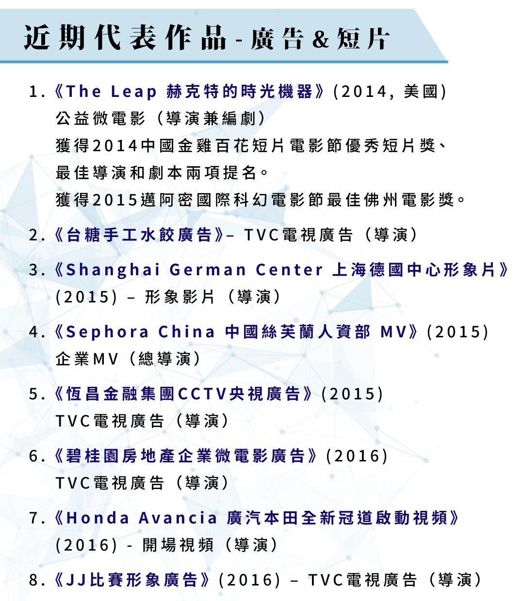 ▼ 楊導演於中國大陸的作品《碧桂園房地產企業微電影廣告》分鏡對照版
