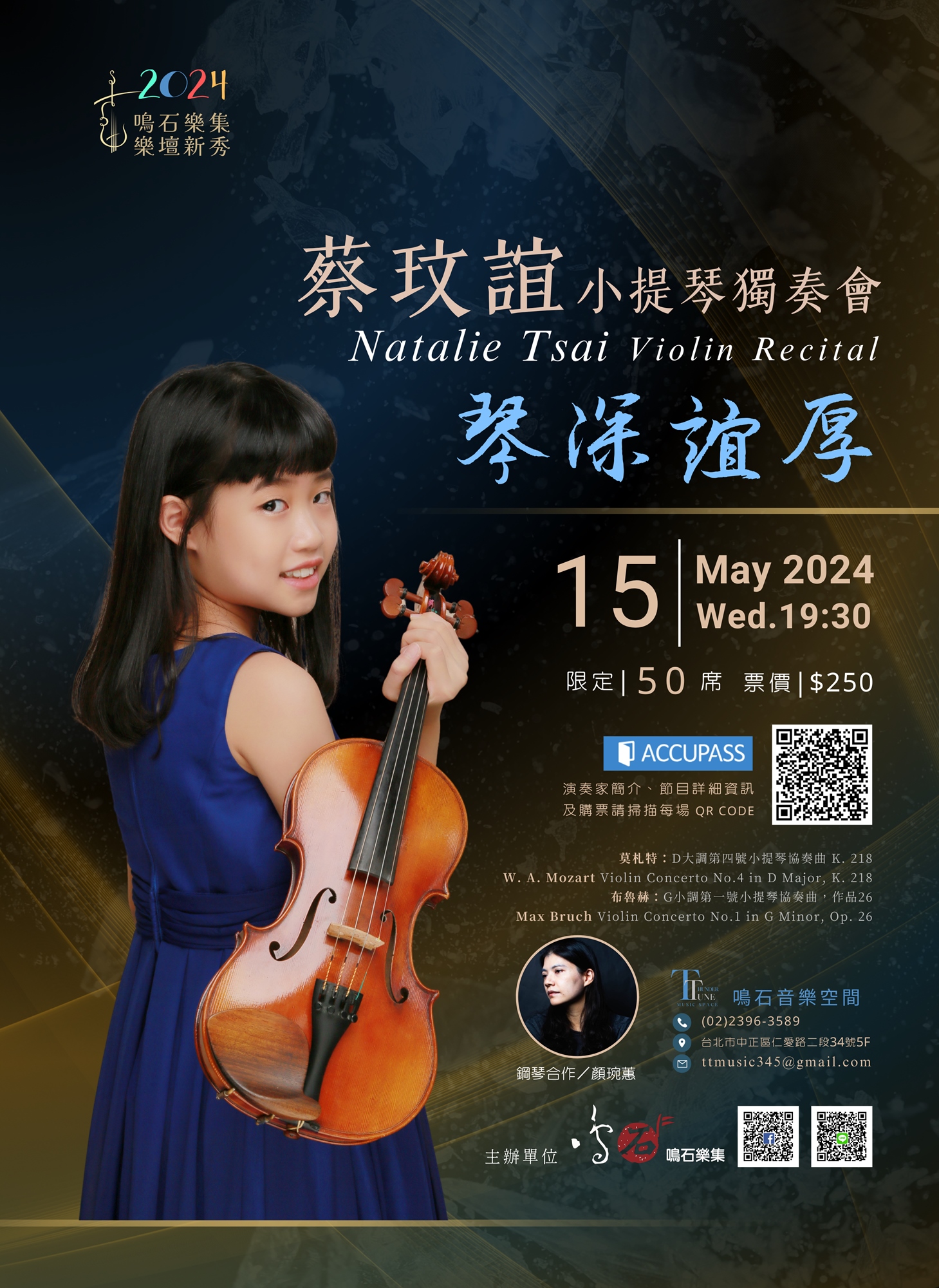 蔡玟誼(Natalie Tsai)《琴深誼厚》獨奏會,精選了莫札特和布魯赫兩位大師的代表作。莫札特第四號D大調小提琴協奏曲(K218)以明亮、活潑的氛圍和高度的技巧性聞名。布魯赫g小調第一號小提琴協奏曲(作品26)則是19世紀的浪漫樂派經典,以深情的旋律和精湛的技巧著稱,迄今仍屬小提琴獨奏曲目中的經典。