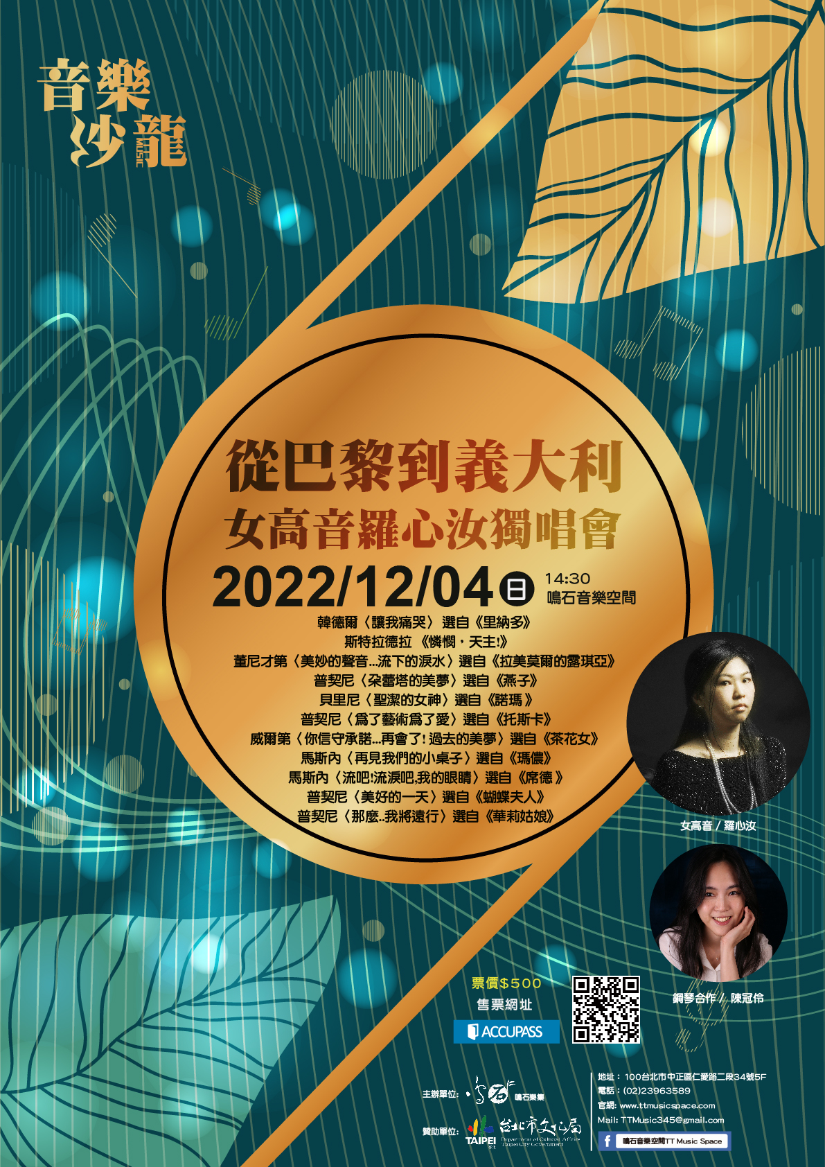 鳴石樂集音樂沙龍《從巴黎到義大利》女高音羅心汝獨唱會