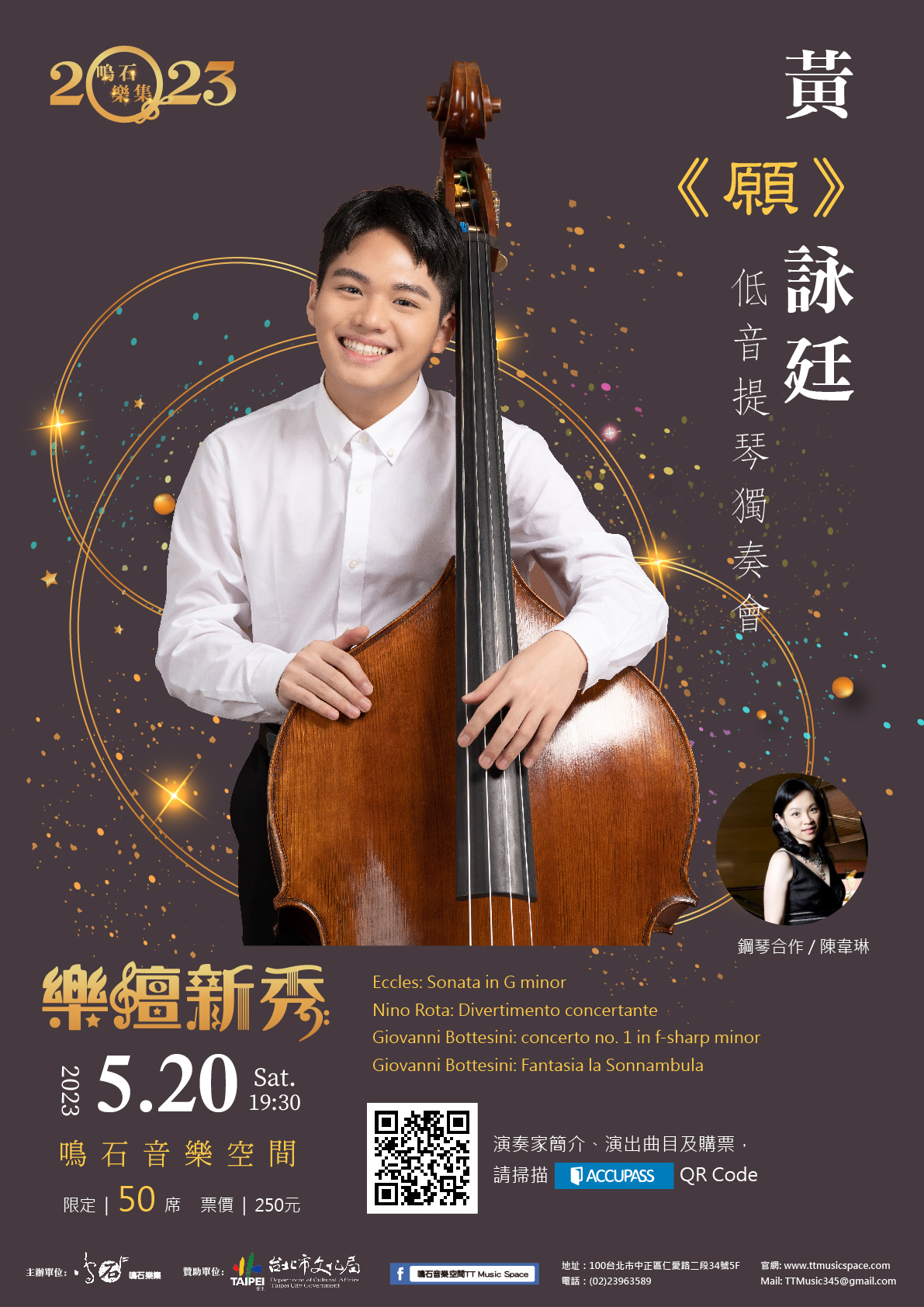一心北上追隨師事台灣低音大提琴首席傅永和老師,並在新店高中接受傅永和老師培訓與訓練,在學習的過程中與音樂班的同學相互切磋成長,且主動自律式的模式勤加練琴,且不間斷觀摩學習聆聽多場大型國家音樂廳舉辦之音樂會及小型獨奏音樂會等…增加自我水準。