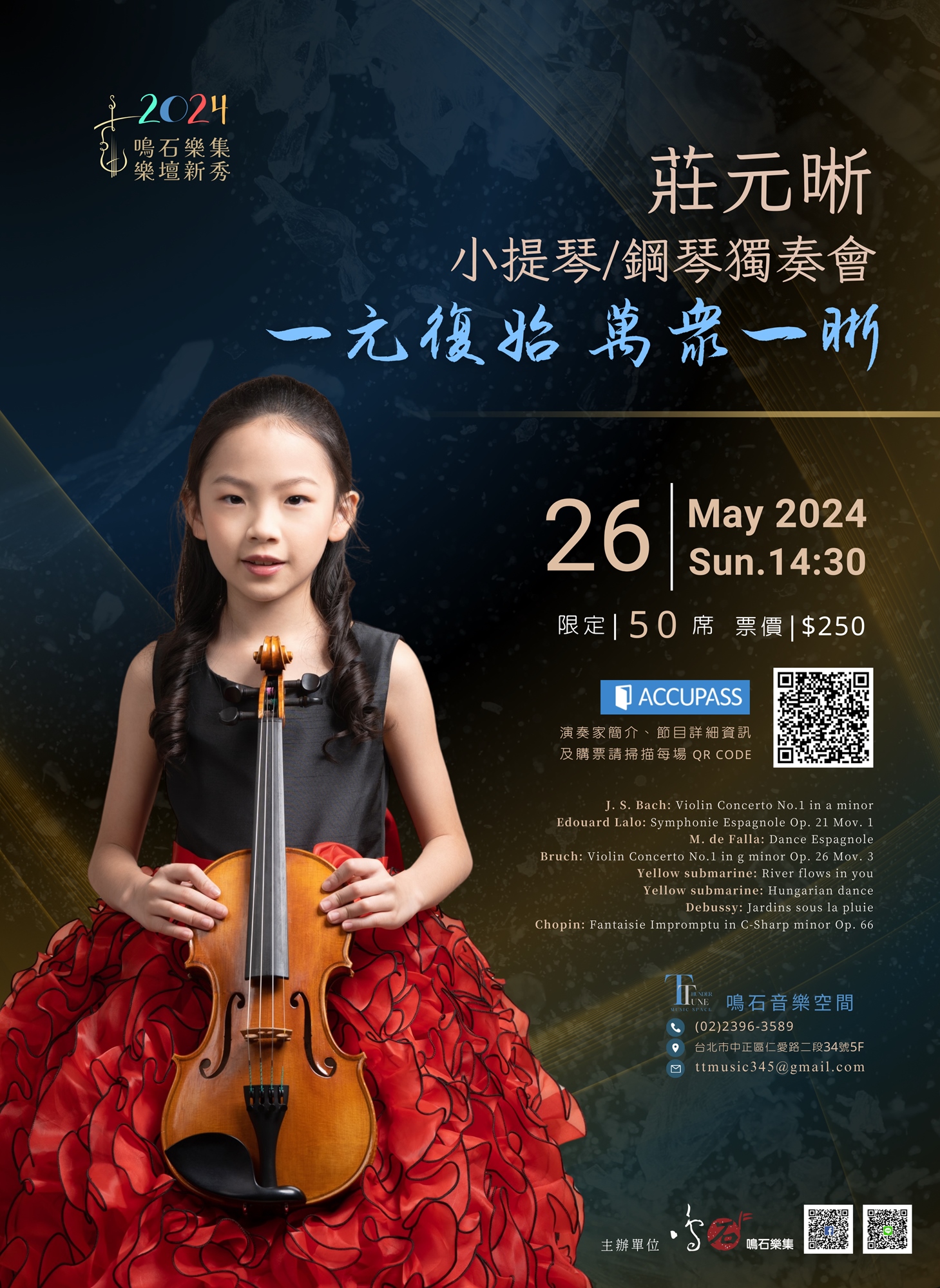 鳴石樂集樂壇新秀《一元復始、萬眾一晰》莊元晰小提琴/鋼琴獨奏會