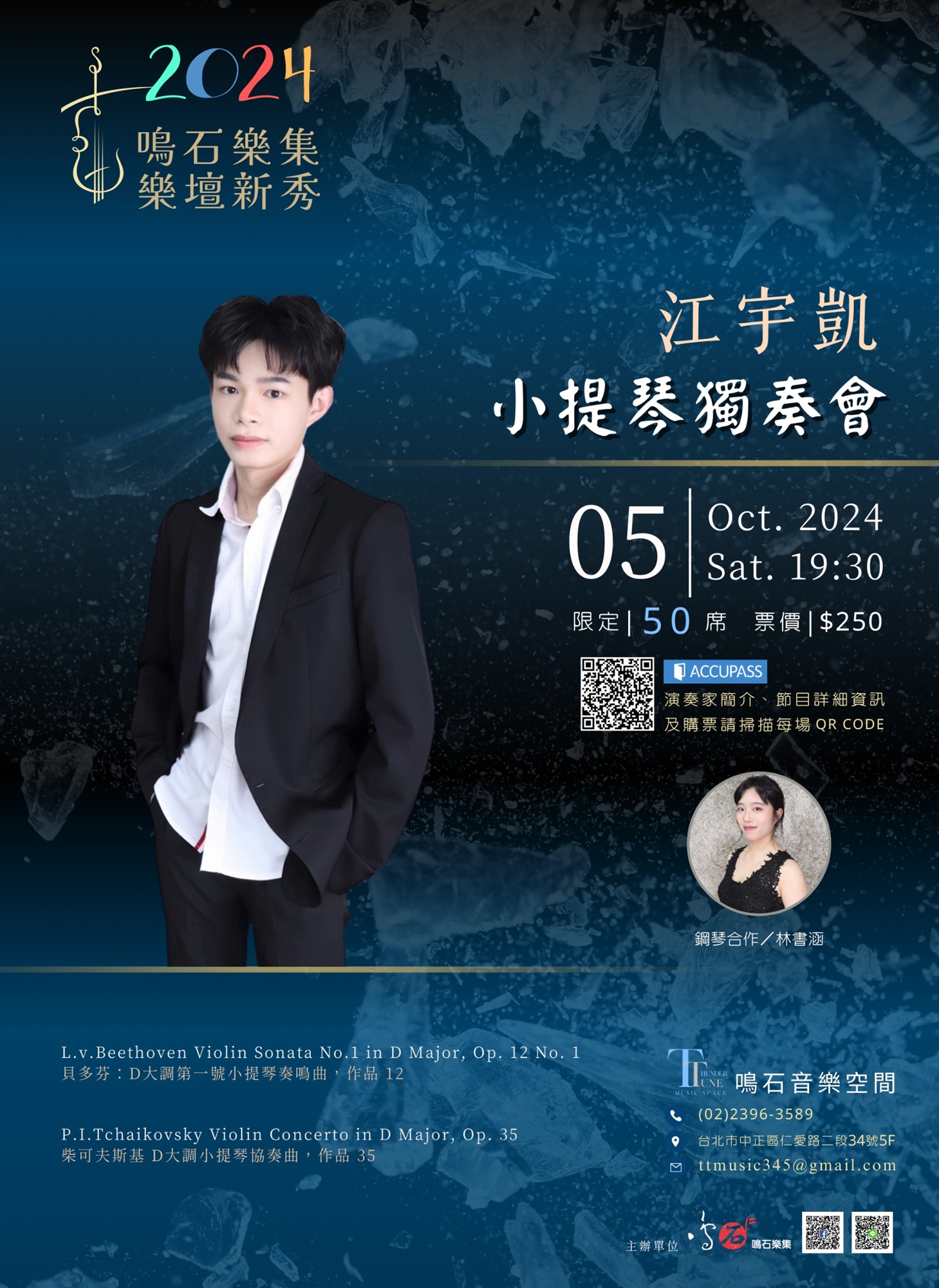 奏鳴曲為小提琴演奏領域最重要的曲種之一,而貝多芬小提琴奏鳴曲強烈的力度變化、鮮明的情緒對比,與鋼琴相當展現出既合作又競爭的二重奏。柴可夫斯基小提琴協奏曲有著抒情且奔放的旋律,更被列為四大小提琴協奏曲之一。這次音樂會,宇凱將演出優美又炫麗的精彩作品,帶給您深刻難忘的音樂饗宴!
