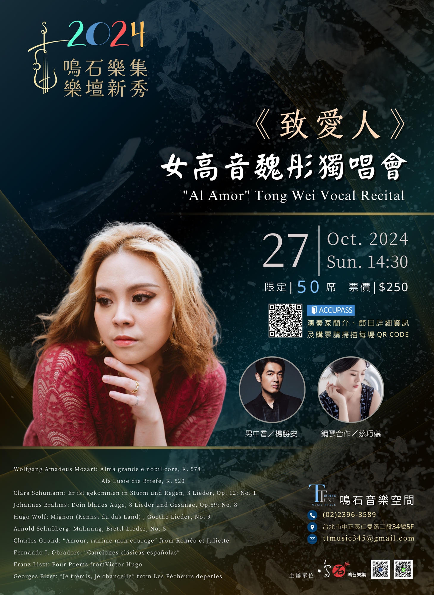 這次的音樂會「Al Amor 致愛人」,魏彤挑選以愛圍繞作為主題的歌曲,除了世間男女情愛之外,其餘包羅萬象的愛也一同納為這次音樂會的主軸之一,因萬般皆是愛。