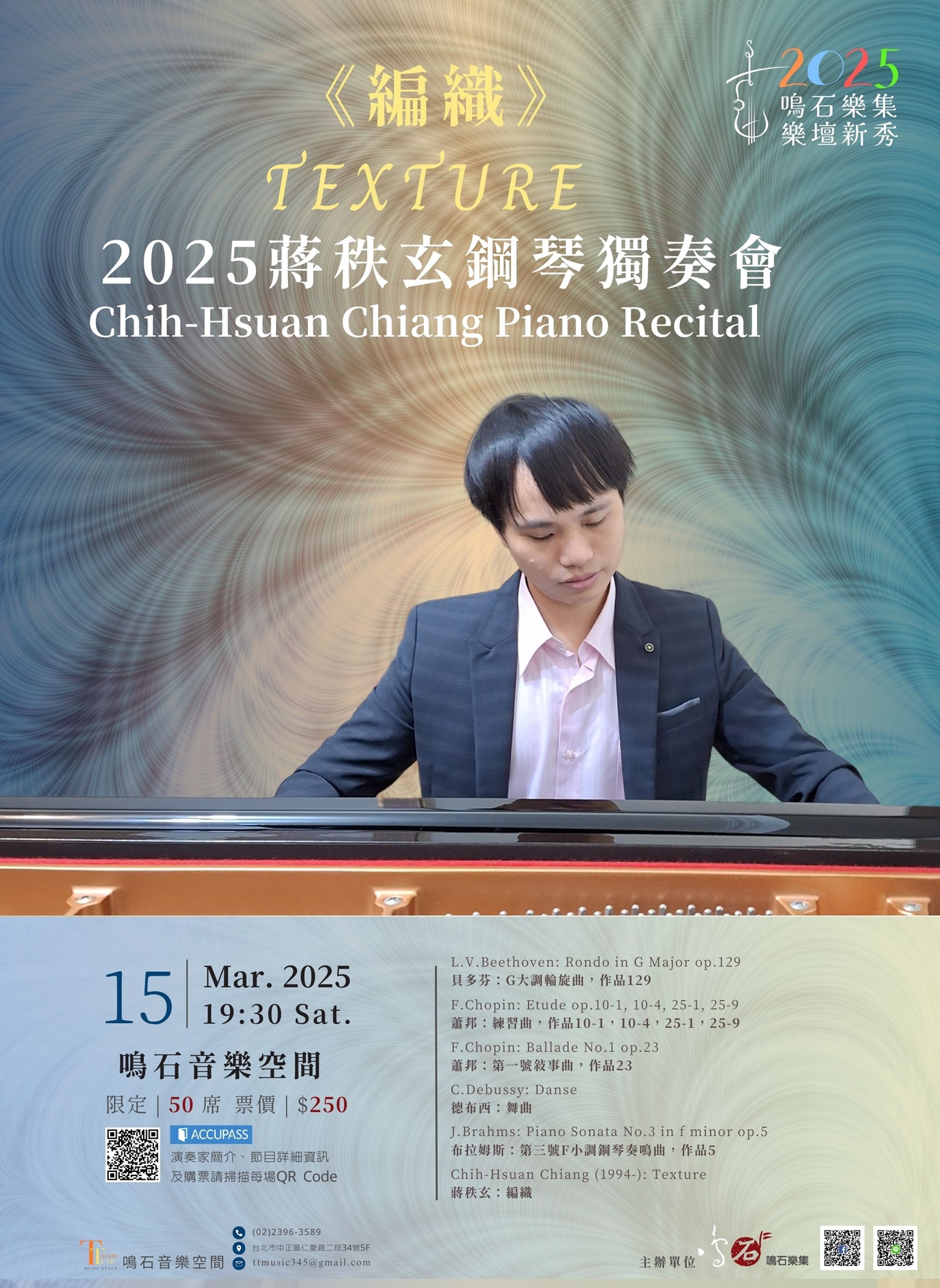每個人的性格都由不一樣的元素編織而成,人與人的關係也會有不一樣的織度,這些元素不一定非黑即白,更多的是一些灰色元素;就像不一樣的樂曲也會有著不一樣的織度,這場音樂會會使用許多曲子來讓觀眾們感受不一樣的架構編織出來的樂曲,有著不同的大小調、不一樣的和聲風格以及許多不同的結構,望觀眾能用自身的經歷或是人際關係來感受這些不同織度的樂曲。