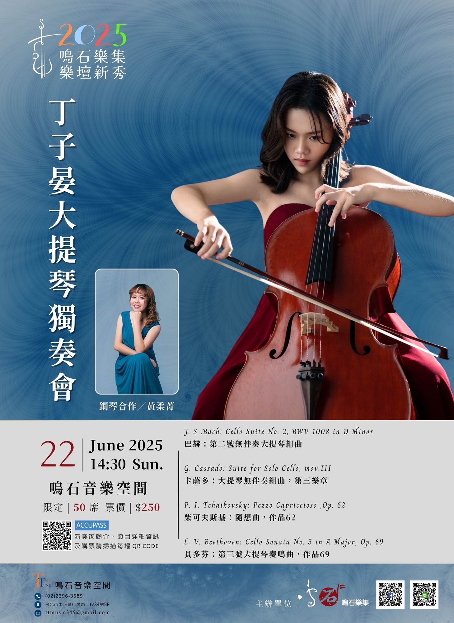 這場音樂會將以各種不同風格的曲目來展現大提琴獨特的魅力,誠摯邀請您來共襄盛舉!