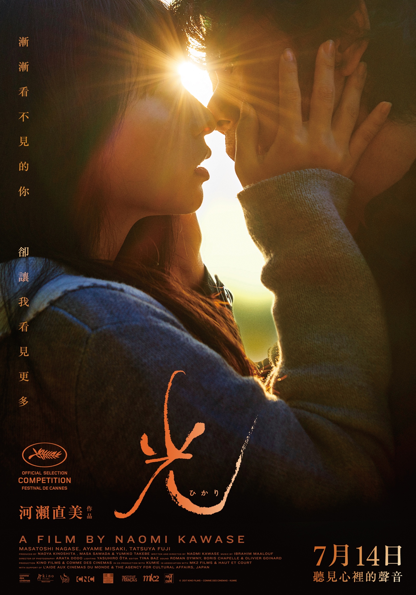 注視著你的這一天是如此美妙一個逐漸失去視力的攝影師雅哉,在人生即將黯淡無光之際,他遇到一個專門為視障朋友製作無障礙聲音的指導師美佐子,雅哉透過美佐子的眼睛,探索「光」及「聲音」為人們的心靈帶來希望,兩人也因此譜出一段美麗的愛情故事。曾以《萌之朱雀》獲得坎城影展金攝影機獎、《殯之森》抱回正式競賽單元評審團大獎的河瀨直美,今年最新作《光》再度風光入圍坎城影展,找來《戀戀銅鑼燒》合作過的男星永瀨正敏主演。