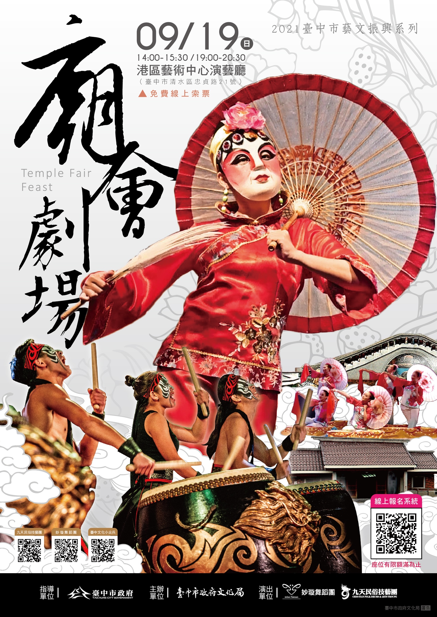 本次演出也將與臺灣陣頭領導團隊-九天民俗技藝團合演,透過九天精緻的陣頭演出搭配妙璇舞蹈的表演做為演出主軸,期望使觀眾們重溫舊時記憶,回味故鄉特有的風情,加深對臺中這片土地的情感連結!