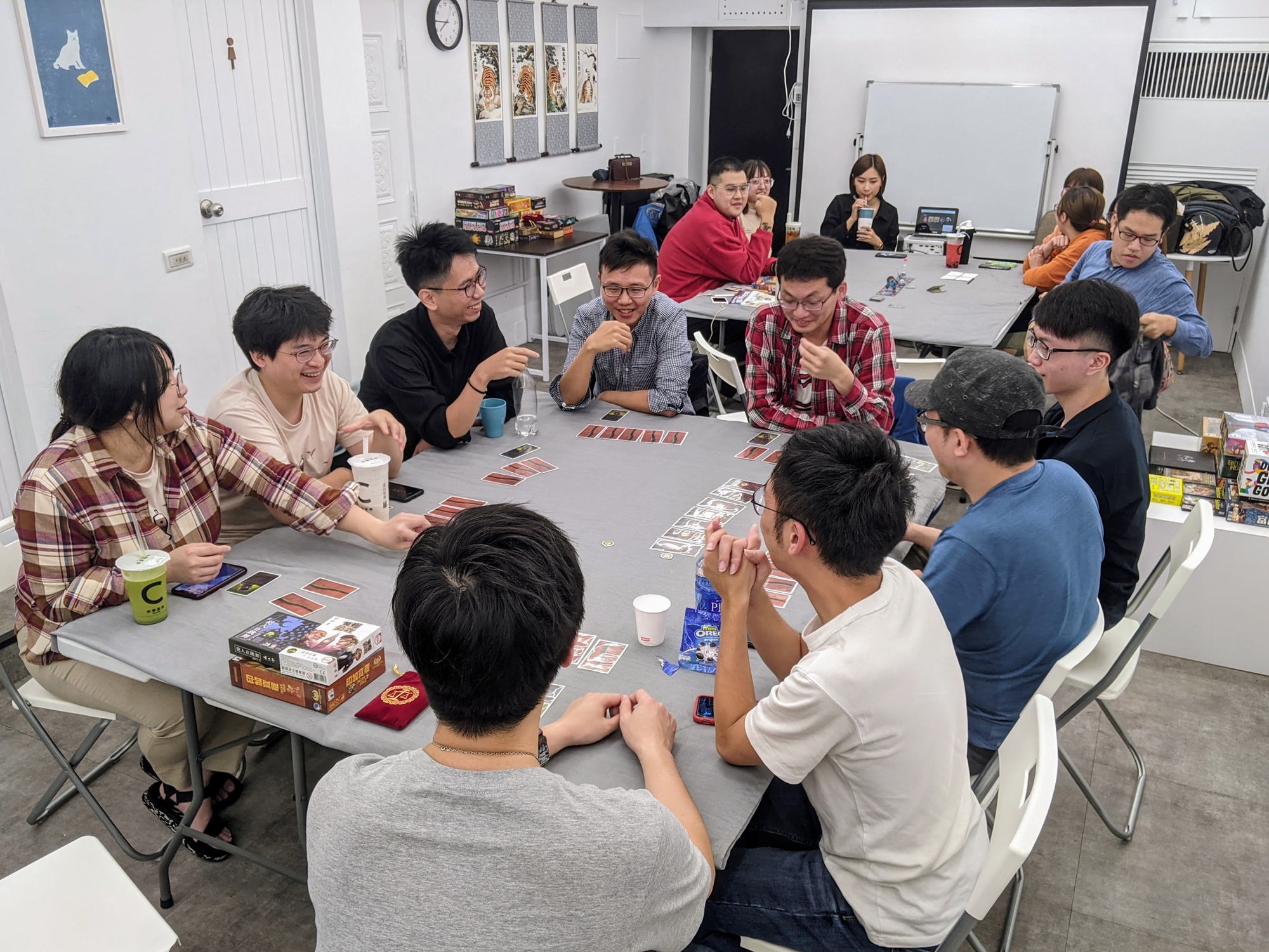 接著人差不多到齊、湊滿一桌之後,就會玩陣營或分組對抗的遊戲 (驚爆倫敦、機密代號、截碼戰、阿瓦隆、CS-Files 犯罪現場等),大家比較好互相討論、聊天炒熱氣氛 🔥