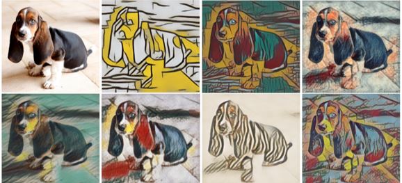 本次工作坊將介紹如何使用TensorFlow深度學習套件來將一張圖片的風格套用在另一張圖片的內容上,也就是圖片風格轉換(如下圖)。