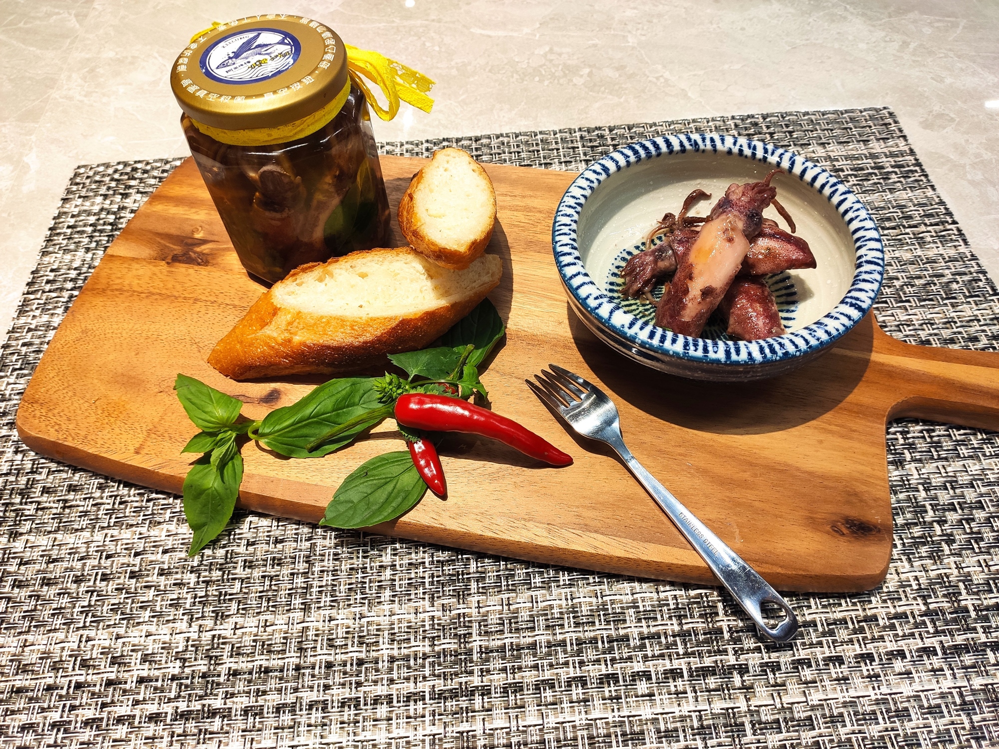 再來點異國風味吧!食物的保存方法會因地制宜,用鹽、糖、醋、米糠、醬油等,以浸漬的方式來延長食物保鮮期。油漬,使用橄欖油,將基隆本港的鎖管佐新鮮香料,一起鎖住最自然的好味道。冰箱常備品又多了一項新花樣!
