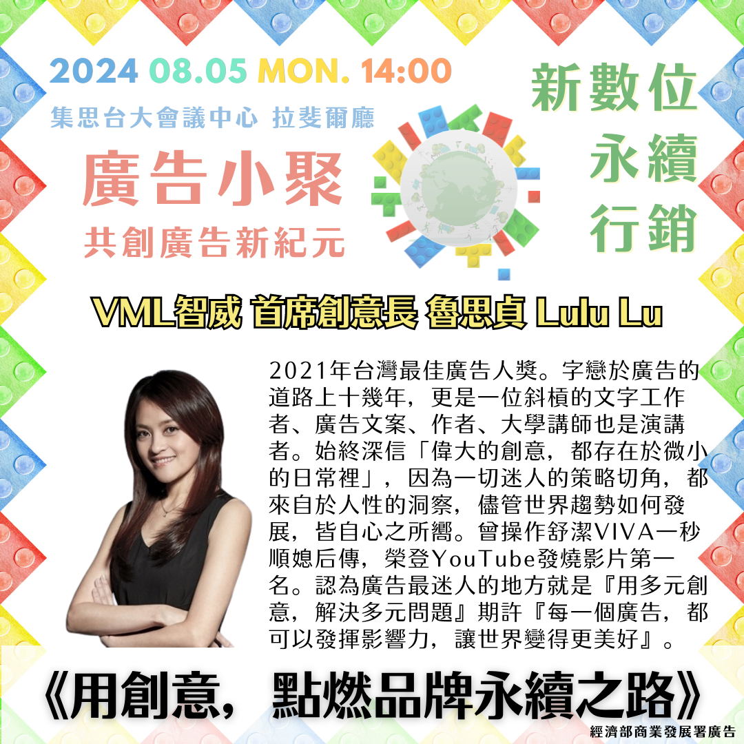 14:15-14:45 | 用創意,點燃品牌永續之路 | VML智威 首席創意長 魯思貞 Lulu Lu |
