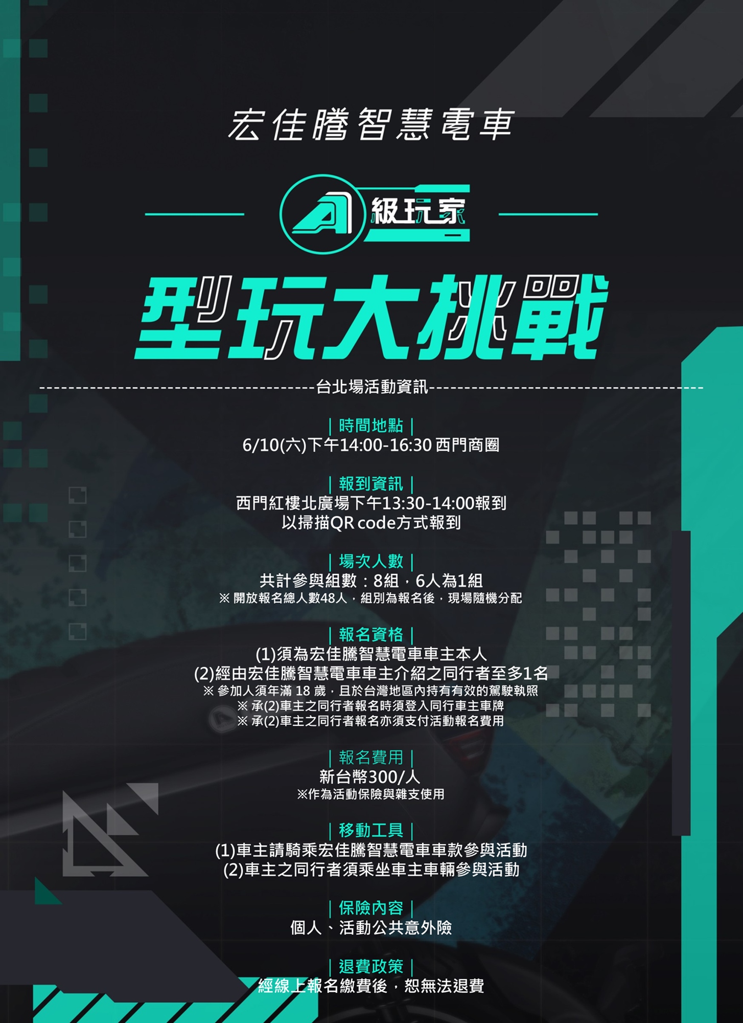 1. 本活動全名為「宏佳騰智慧電車 A級玩家-型玩大挑戰」。