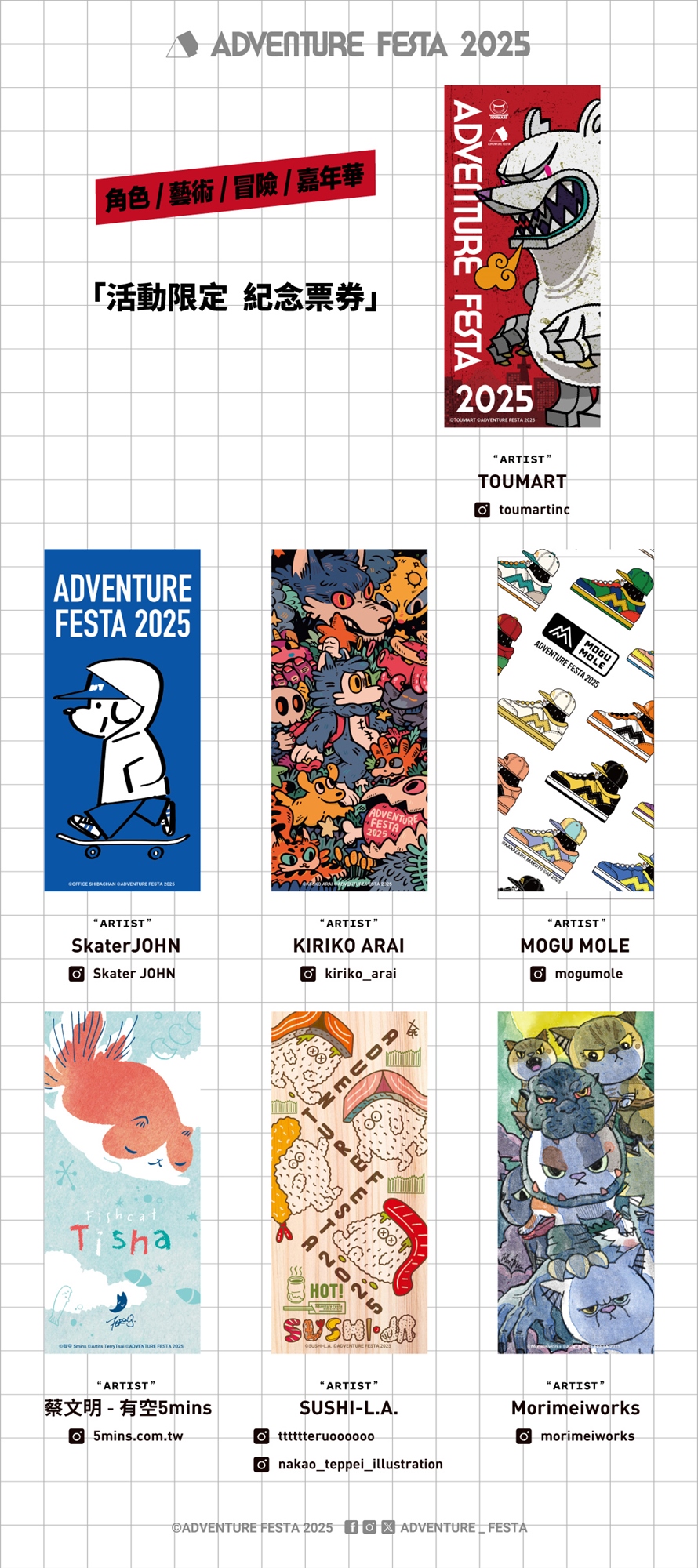 AF很榮幸邀請到 7 位大人氣創作者,為粉絲們設計2025展會限定的實體入場券。所有前來參與活動的冒險者朋友們,都有機會收藏自己喜歡的款式。