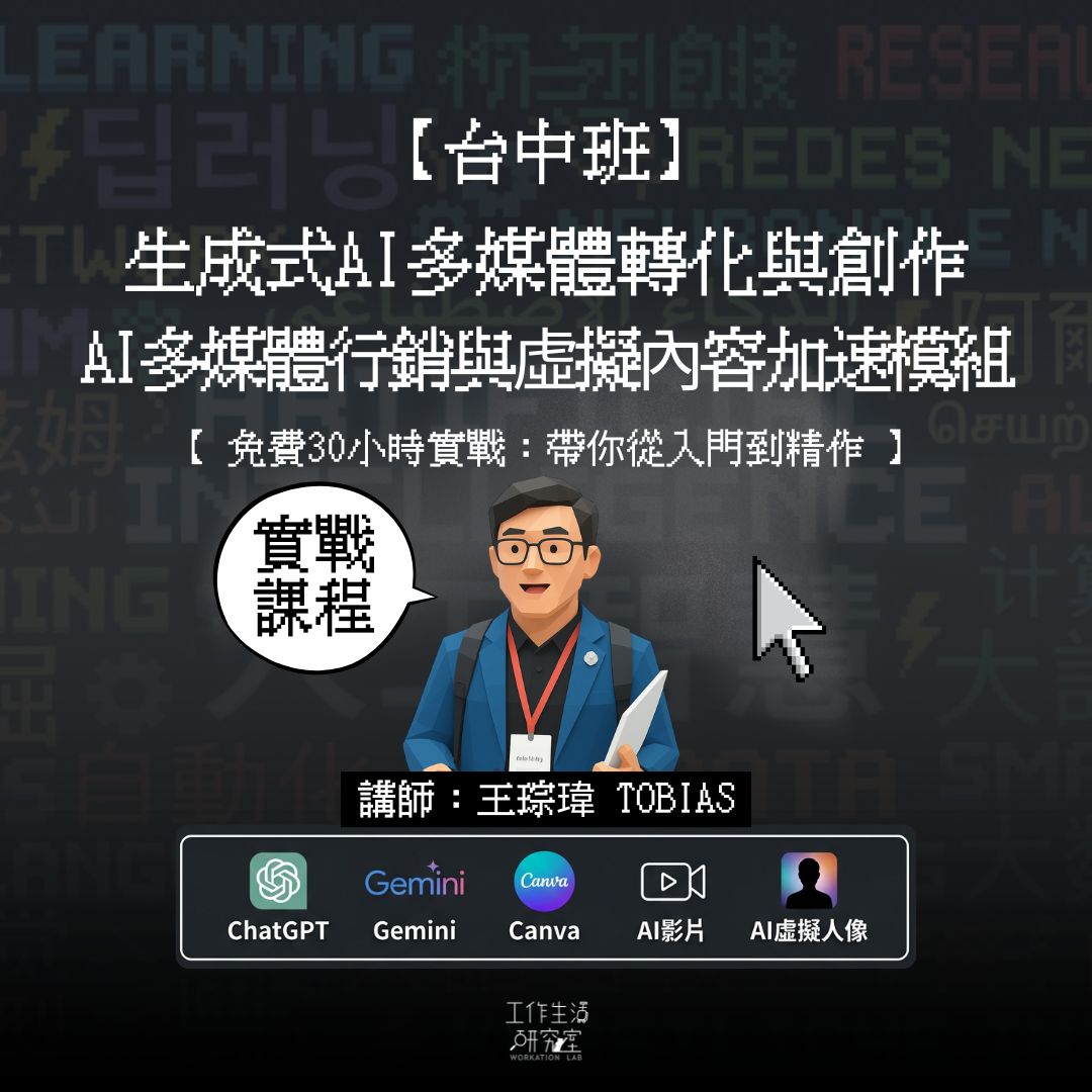 【台中班】生成式AI多媒體轉化與創作:AI多媒體行銷與虛擬內容加速模組 (免費30小時實戰:帶你從入門到精作)