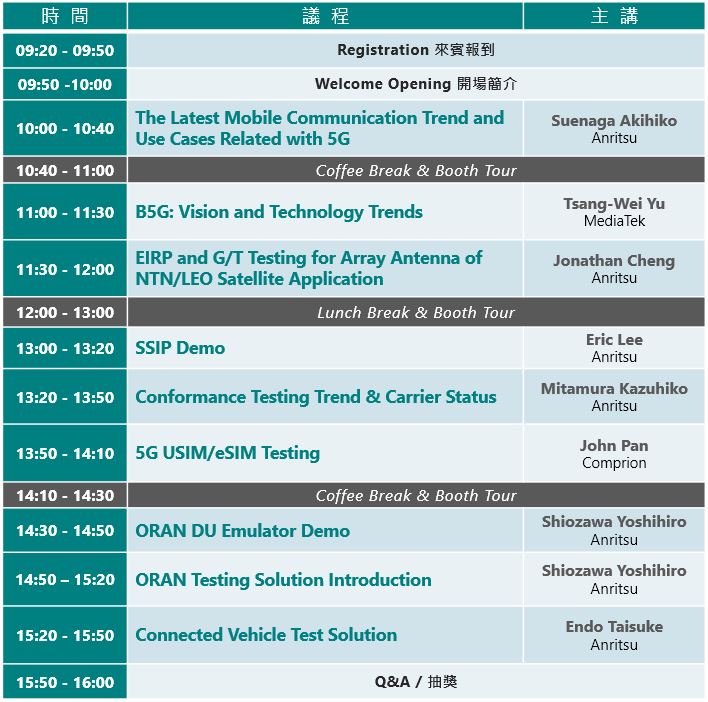 - 基於本場活動通知及聯繫使用,安立知股份有限公司保有您的個人資訊,將透過Email、EDM、電話、簡訊、傳真等方式提供您豐富的產品及研討會等相關訊息。