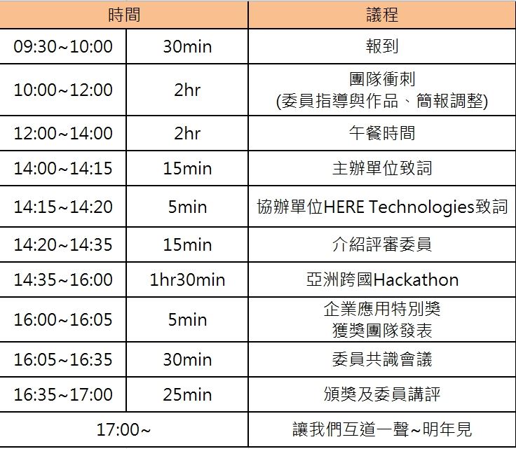 ※榮獲HERE國際特別獎之團隊,需派1名代表11月7日至韓國「2018國際資料經濟高峰會」接受表揚,臺灣-韓國機票與住宿由協辦單位HERE Technologies提供。