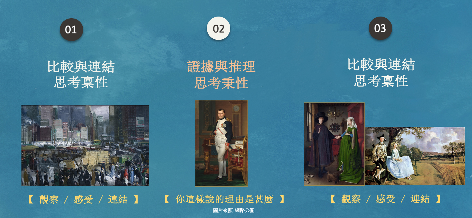 第二階段【看藝術,學思考】:介紹【證據與推理】、【比較與連結】思考稟性