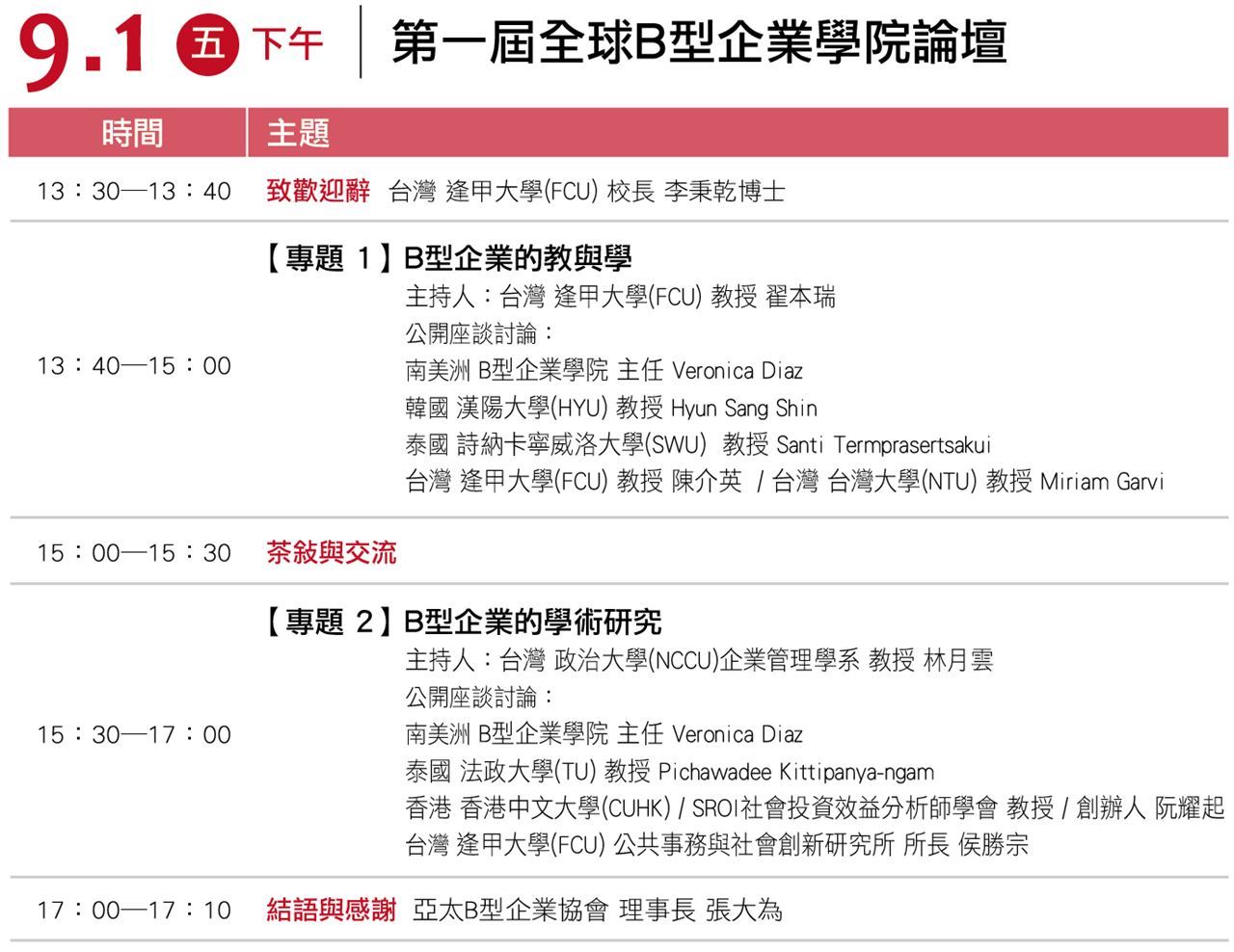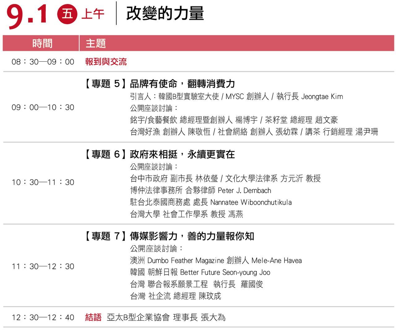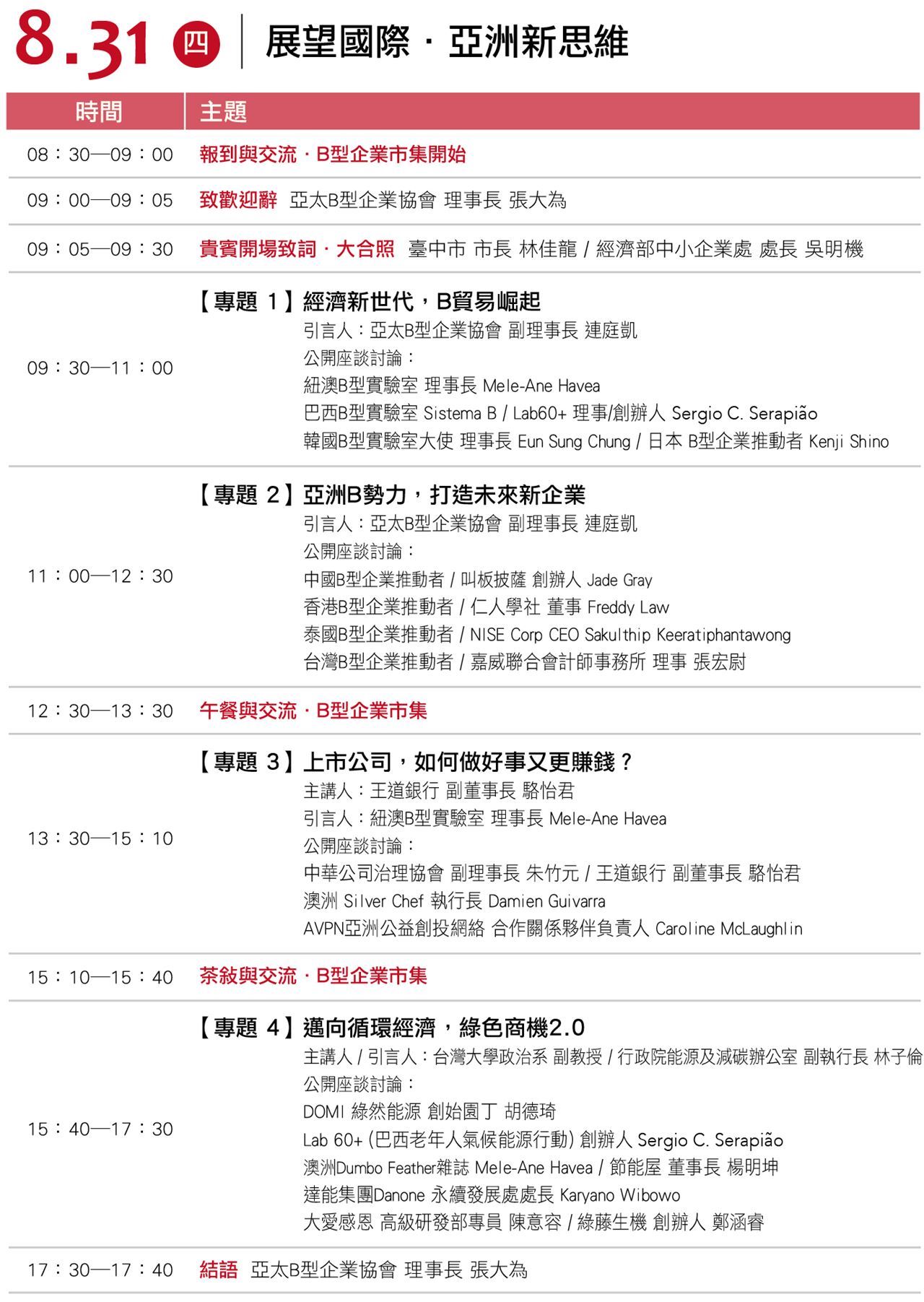 1. 您是參與「亞太B型企業協會」8/31-9/1 的活動嘉賓
