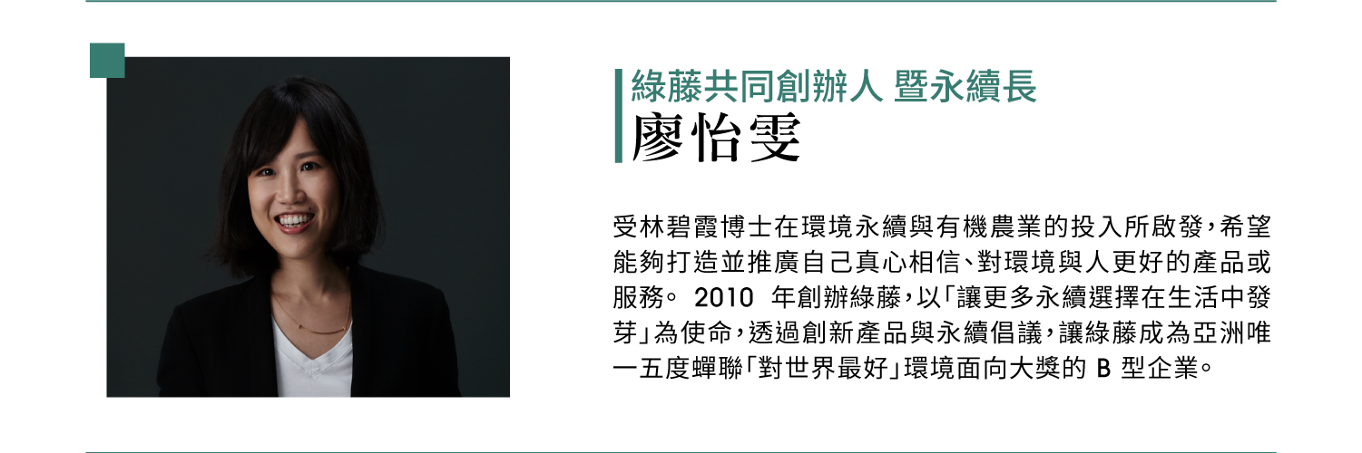 | 14:55-15:40 | 【第五場】綠藤共同創辦人暨永續長 廖怡雯 從純淨保養到純淨香氛,綠藤的永續美學實踐 |