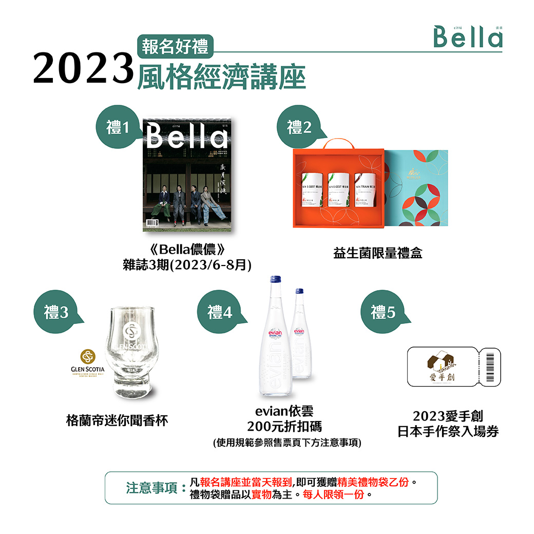 2023年《Bella儂儂》創刊40年,我們特別舉辦為期兩天的『風格經濟講座』,齊聚14位品牌創辦人與風格大師,共12場精彩的多面向內容,了解如何利用『風格』創造商機。