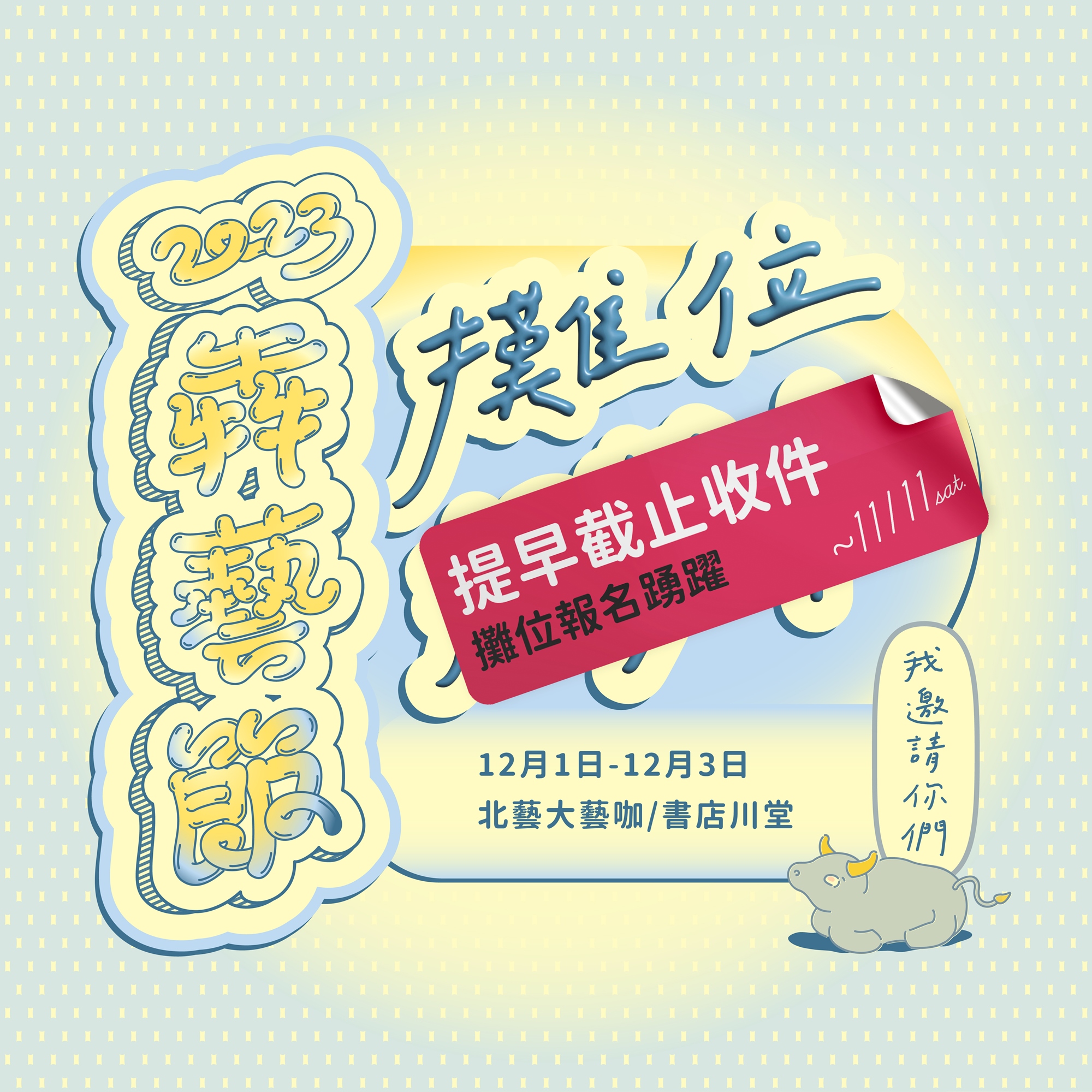 ![]() | 𝑹𝑰𝑮𝑯𝑻 𝑵𝑶𝑾我們正在招募市集攤位,廣徵北藝大所有想賺錢錢的師生校友,我們不限攤位種類,免攤位費,不抽成,但鼓勵具永續SDGs相關內容者 (如售二手衣物),更多資訊請點開下方表單連結( 報名表單➠ https://reurl.cc/2E7eNE |