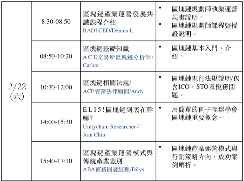 「區塊鏈應用規劃師」證照為會員公司總市值突破上兆的中華民國商業總會「BADI區塊鏈應用及發展研究所」頒發,與區塊鏈產業龍頭,「ABE亞洲區塊鏈生態系」合作,其旗下擁有「加密貨幣交易所ACE Exchange」、「區塊鏈孵化器Asia Blockchain Accelerator」、以及「亞洲區塊鏈傳媒Asia Blockchain Media」,囊括了交易所、企業輔導、以及社群行銷,為亞洲最完整的區塊鏈生態系。